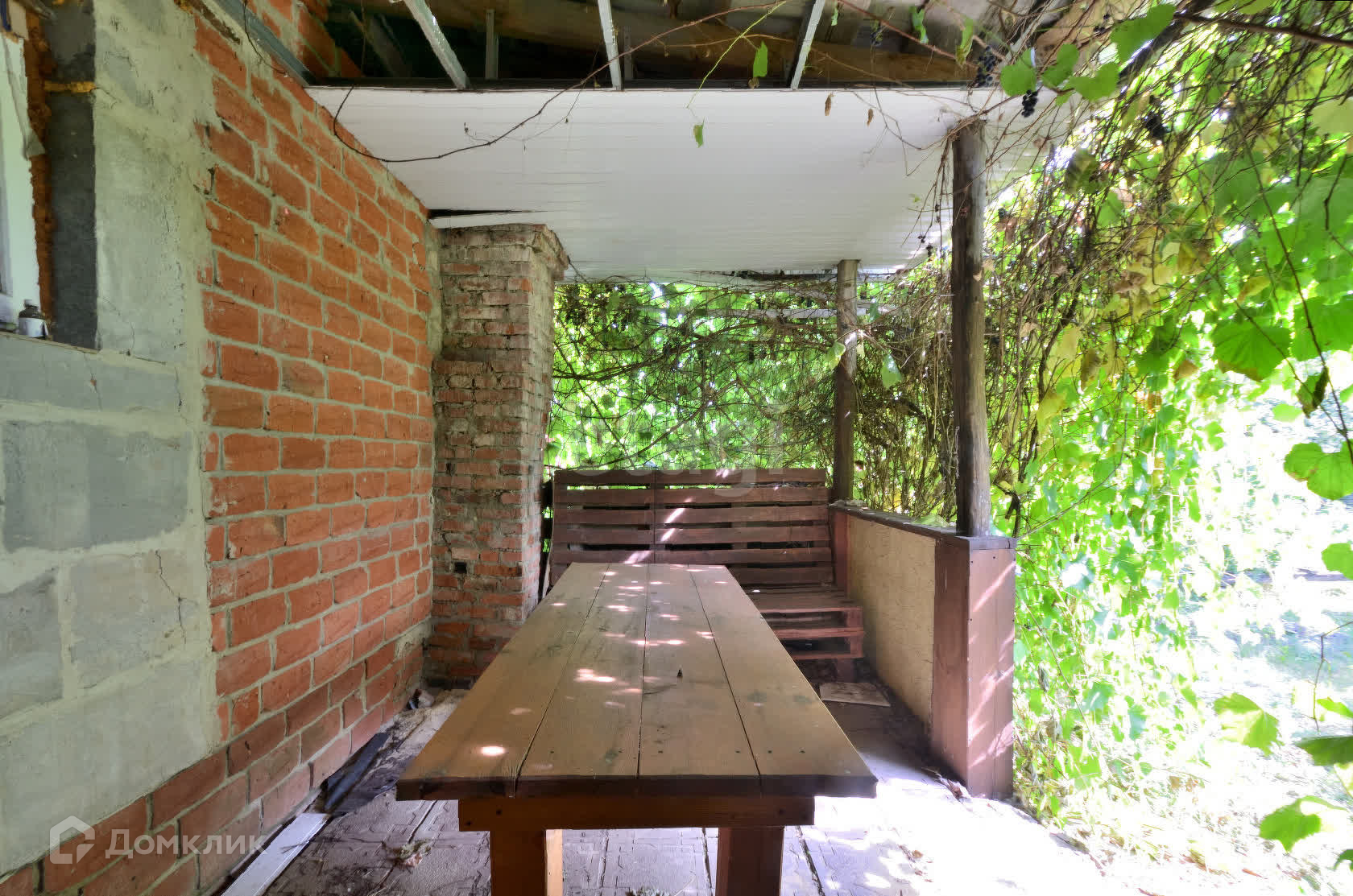 Мощные стены из пенобетона облицованы кирпичом с двух сторон. Фундамент — свайно-монолитный армированный, перекрытия деревянные. Для безопасности в доме установлена охранная система. Гараж на 32 метра с бетонными монолитными полами встроен в дом.Имеется веранда с летней кухней.Все постройки узаконены.