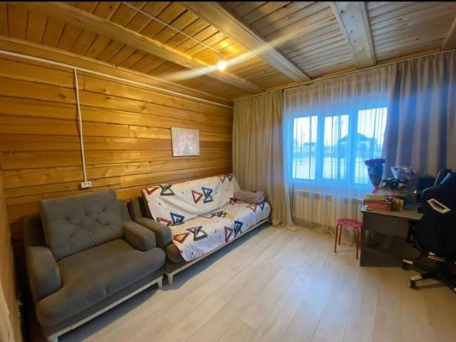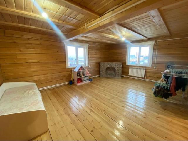Выставлен на продажу частный дом с гаражом на 2 машины. Площадь участка 8 соток. Дом 2-х этажный из бруса, гараж на 2 машины. Четыре комнаты, два зала, кухня, туалет с ванной расположены отдельно. Котельная стоит отдельно от дома. На соседнем участке есть детская площадка, остановка находится со стороны Покровского тракта. Обременение в Сбербанке.