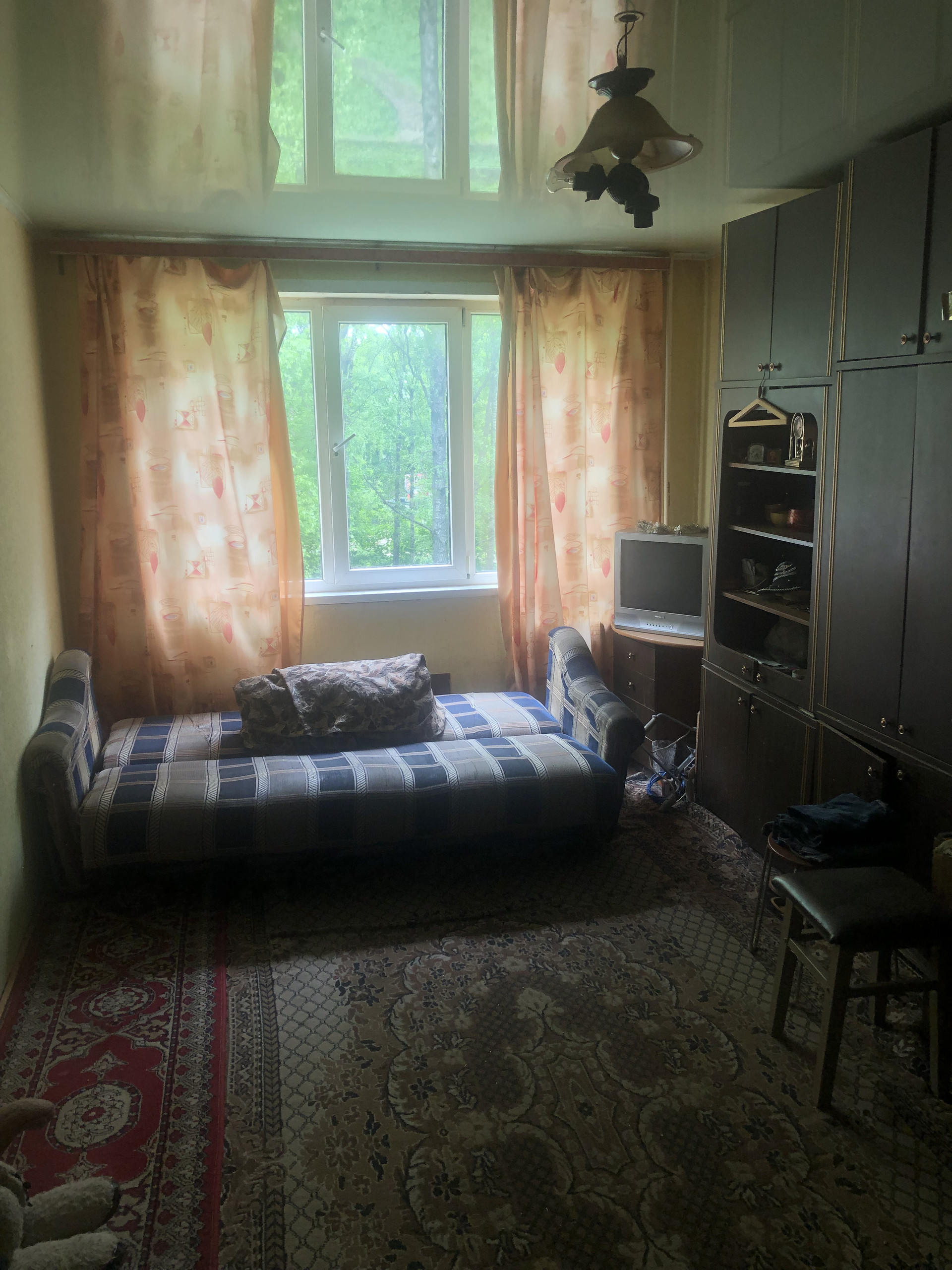 Комната в 2-комнатной квартире, пластиковое окно, натяжной потолок, хорошее расположение дома, окно выходит на зеленую зону, чистый подъезд, хорошие соседи. Рядом озеро. Церковь. Собственник один.