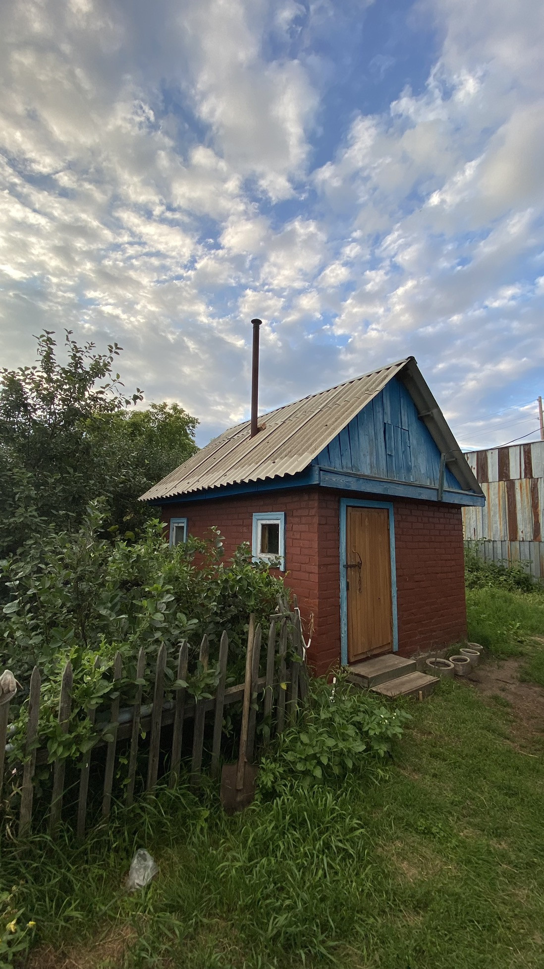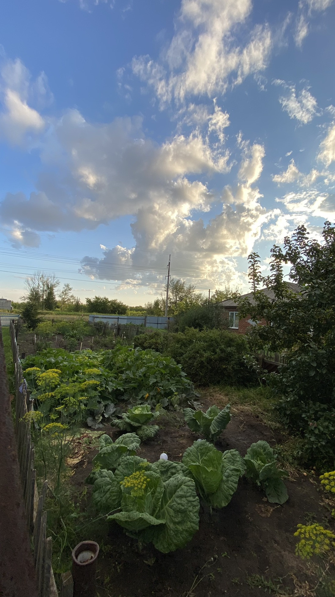 Посадки:малина,вишня,многолетние цветы, 3 яблони, смородина, черемуха, жимолость.