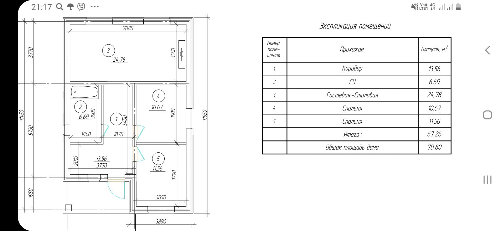 Общая площадь 70 м2