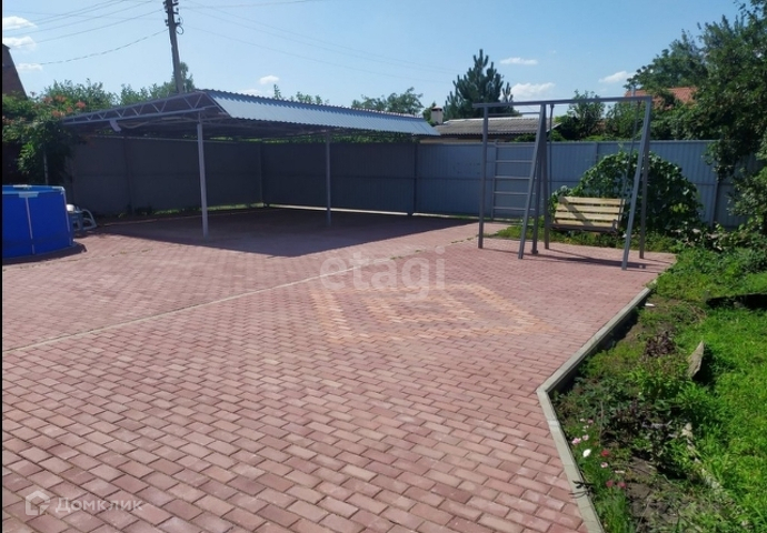 Участок ухоженный, 6,4 соток. Во дворе навес на три парковочных места. Въезд во двор с центральной улицы, ворота откатные.