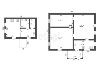 Продаётся дом, состоящий из двух частей, в каждой части имеется свои:кухня, сан узел, зал и две спальни. Двор общий. Цена за две половины. |