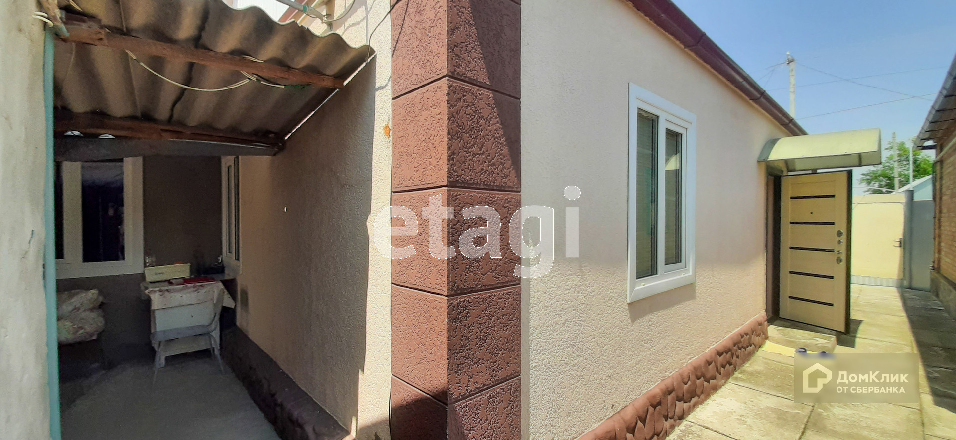Продается трехкомнатный саманный дом облицованный бетонной штукатуркой. Крыша покрыта металлопрофилем.