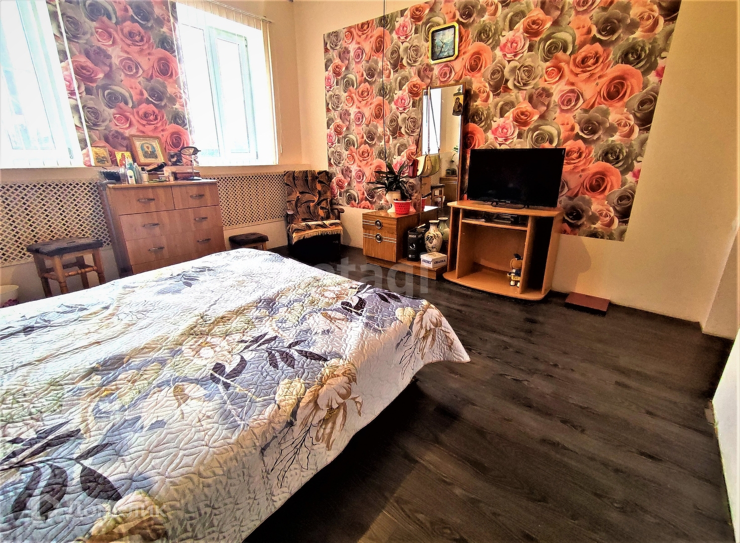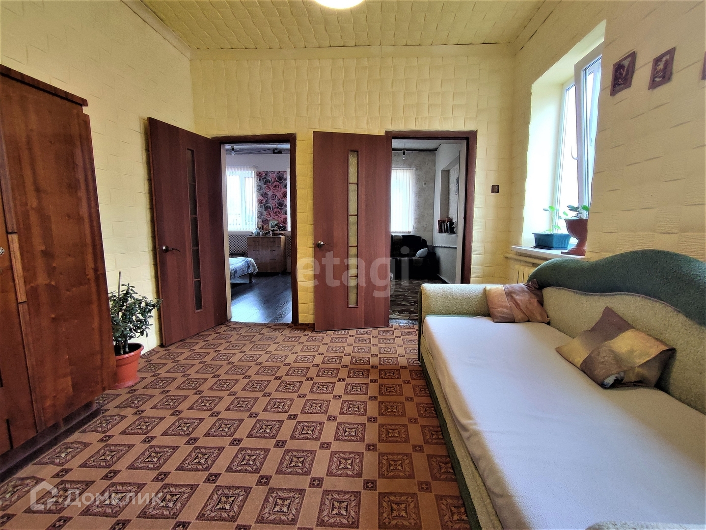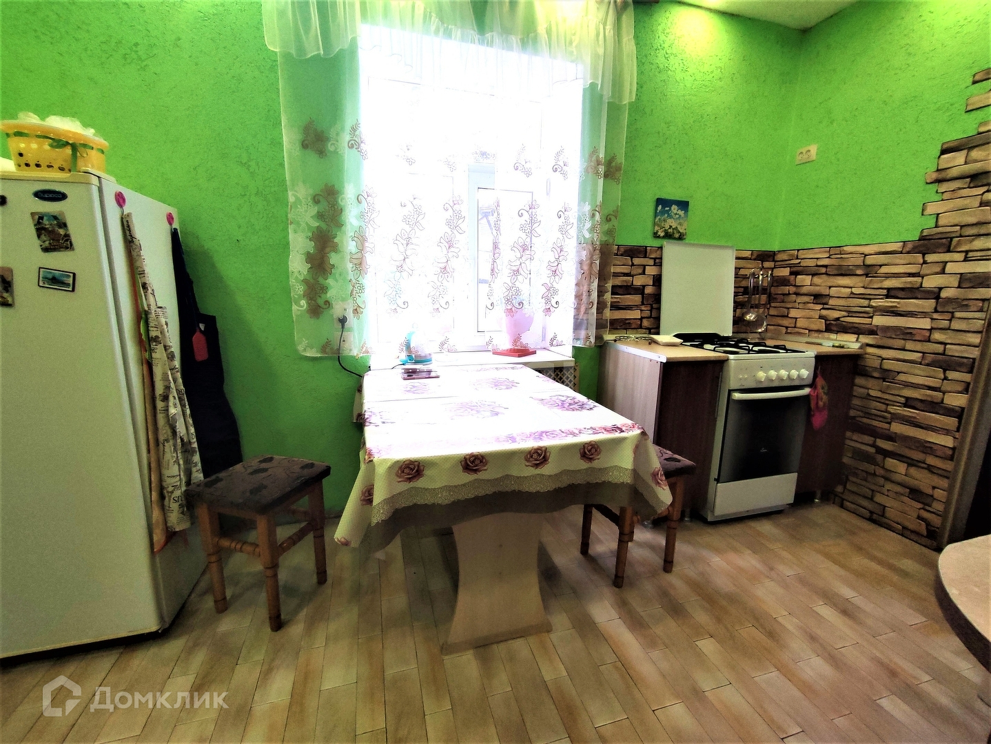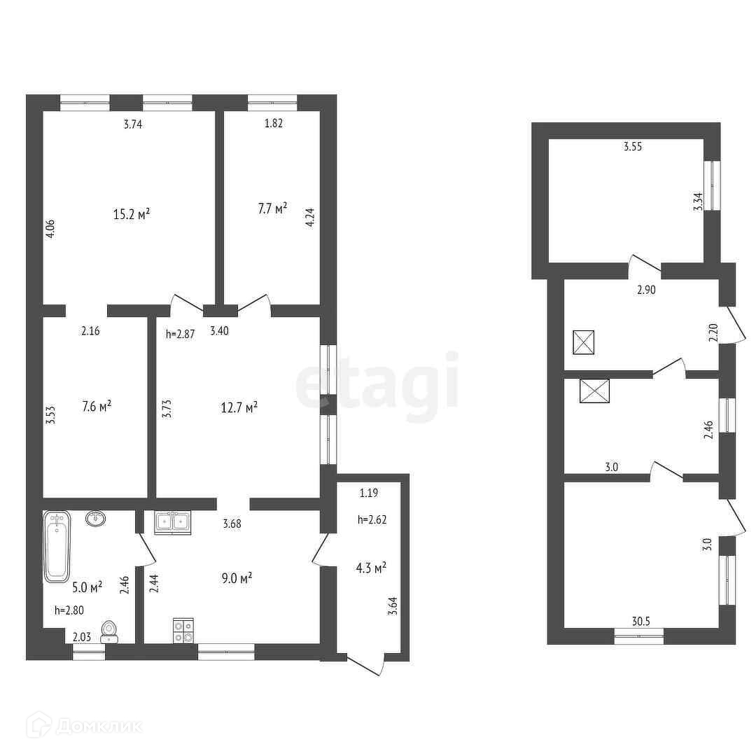 Дом состоит из четырёх жилых комнат, кухни и ванной. Общая площадь дома - 64,7 кв.м. Площадь земельного участка - 11,2 сот.