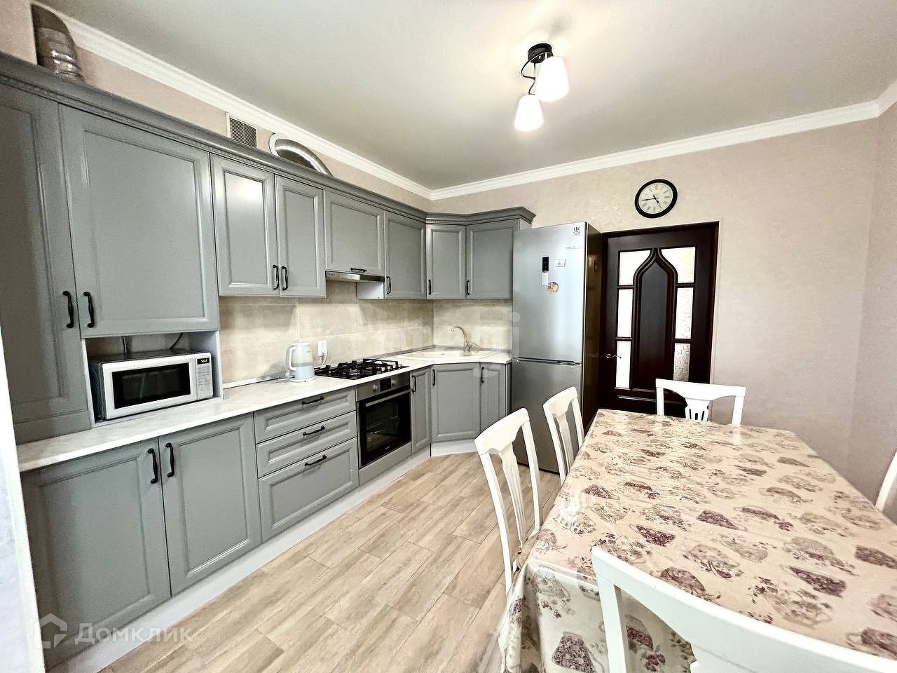 Квартира находится на 1 этаже. Общая площадь 76,5 кв.м, кухня 12,6 кв.м.