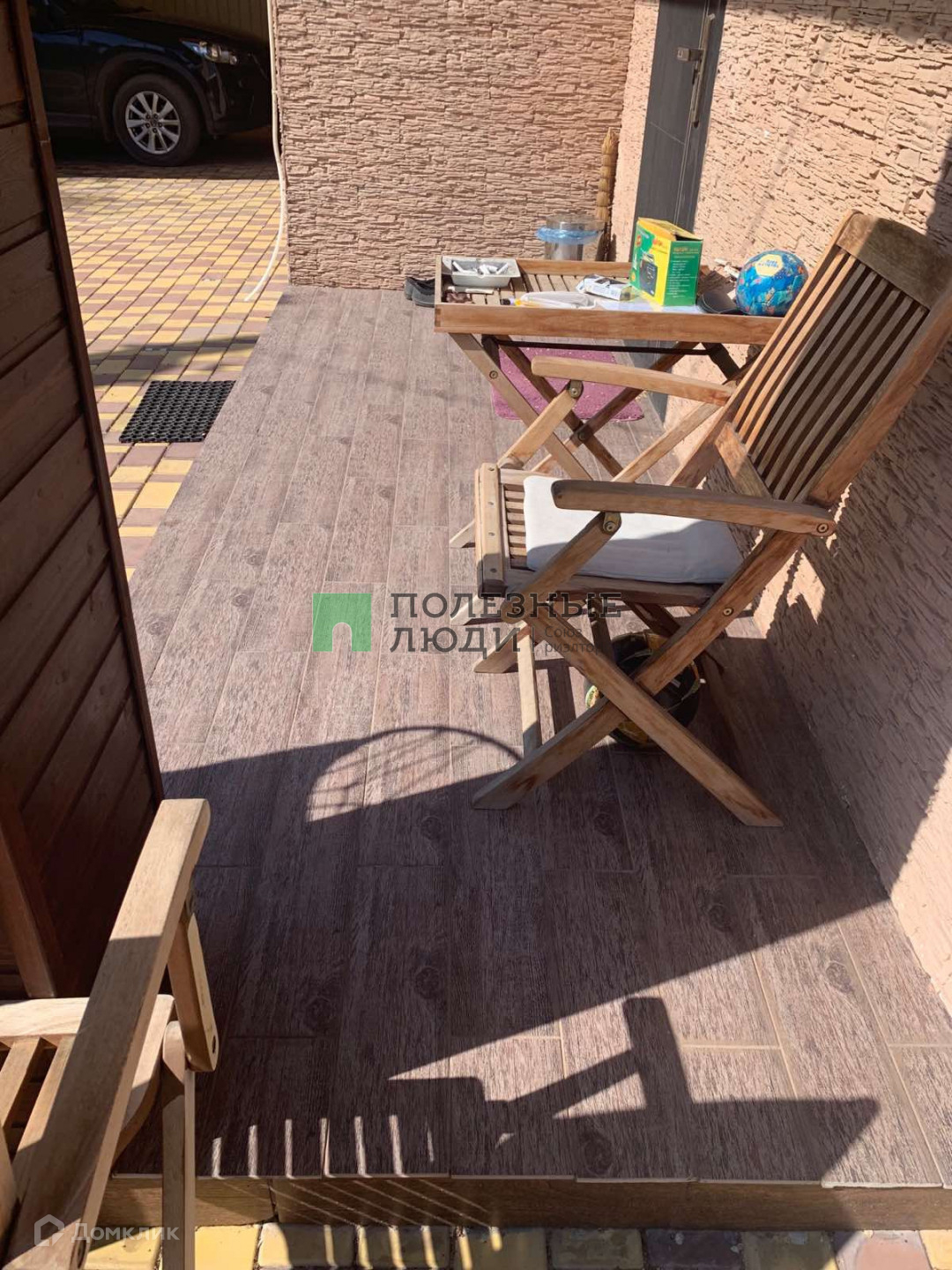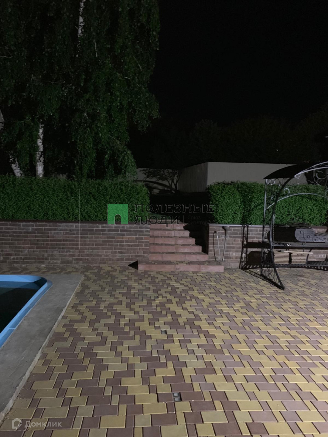 Участок 7 соток имеет зону отдыха с бассейном и сад с плодовыми деревьями. Придомовая территория выложена брусчаткой. Стоянка для автомобиля и катера находятся под навесом.