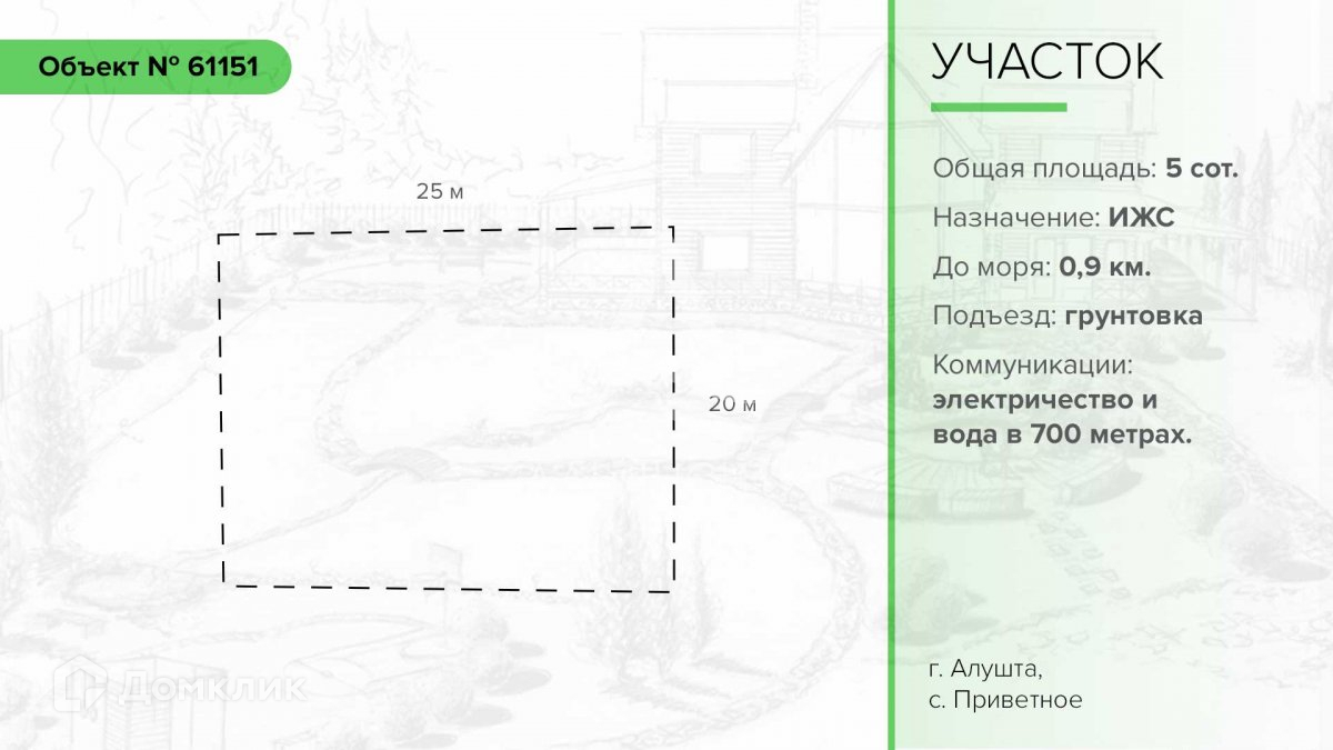 Участок под ИЖС, 5 сот. на продажу в селе Приветном