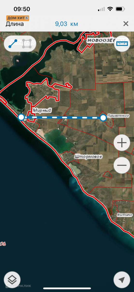 До моря в Штормовое 6км,в Мирный 9км.