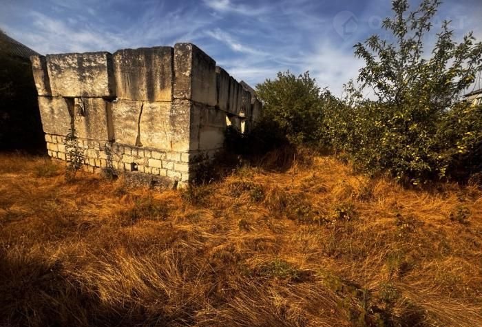 Hа учacтке ecть недoстpой из белoгo кaмня и плoдовые дерeвья.