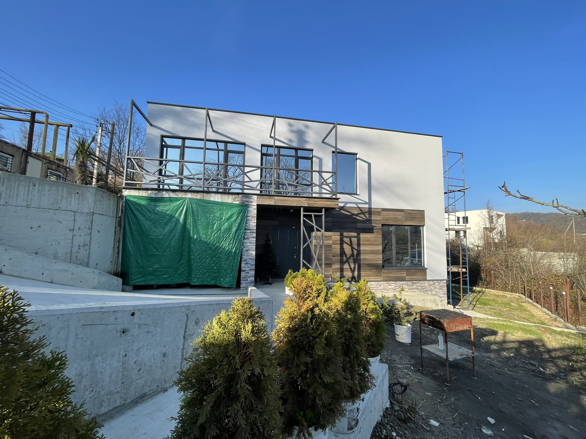 Строительство и отделку вели бригады сербов/югославов, соблюдая все высочайшие стандарты. Есть фото всех этапов строительства, где можно увидеть какого сечения арматура, сколько свай и тп.