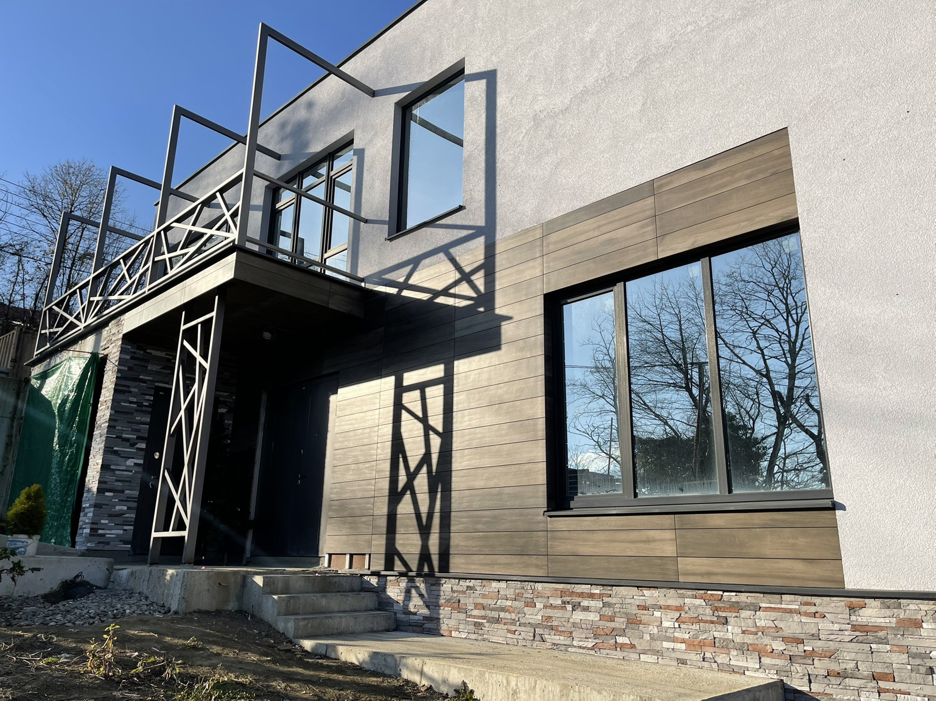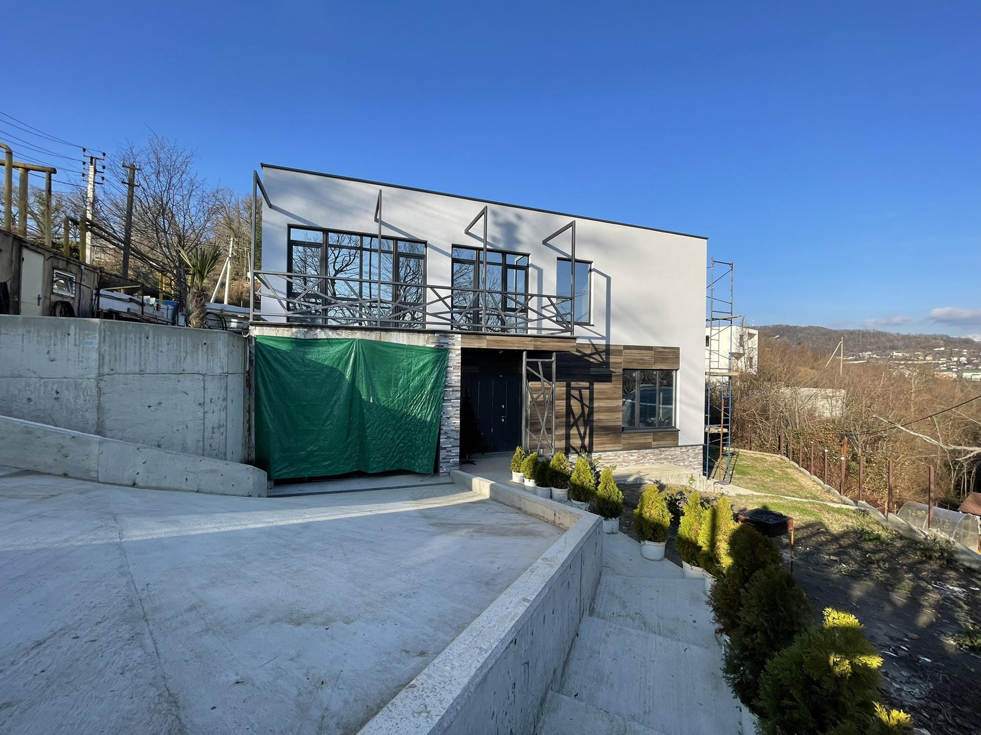 Симбиоз стилей «модерн и хай-тек». Дом проектировался заслуженным архитектором г.Сочи, который проектировал большое количество объектов нашего города.