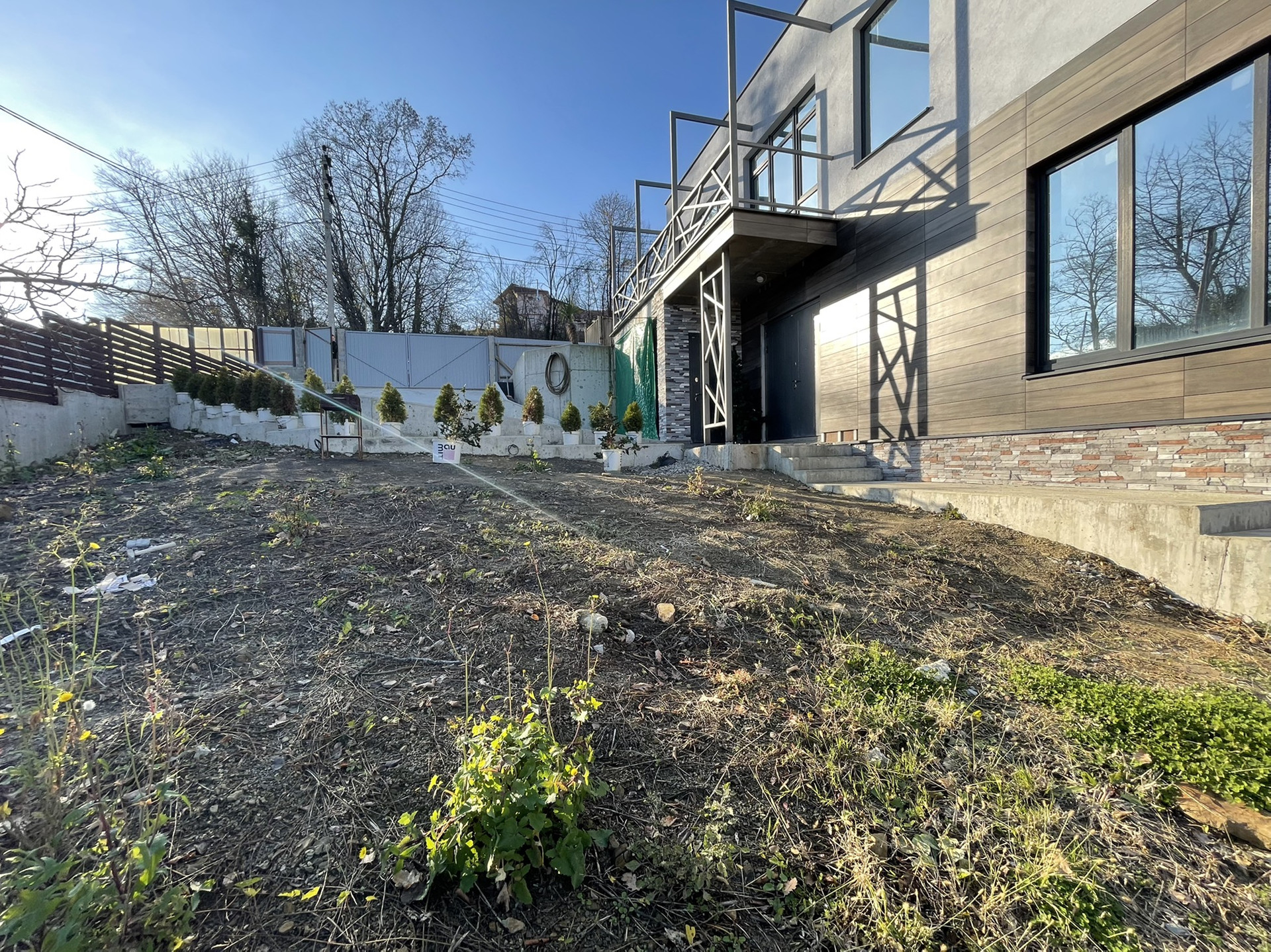 Участок не топит! Сделаны ливневки, а также сам рельеф участка способствует этому, есть склон, выполнено грамотное террасирование.