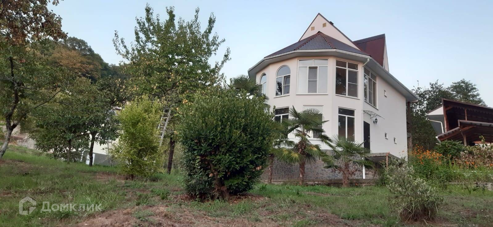 На великолепном участке 18 соток расположены два дома,посажены пальмы, фруктовые деревья, виноград и розарий.