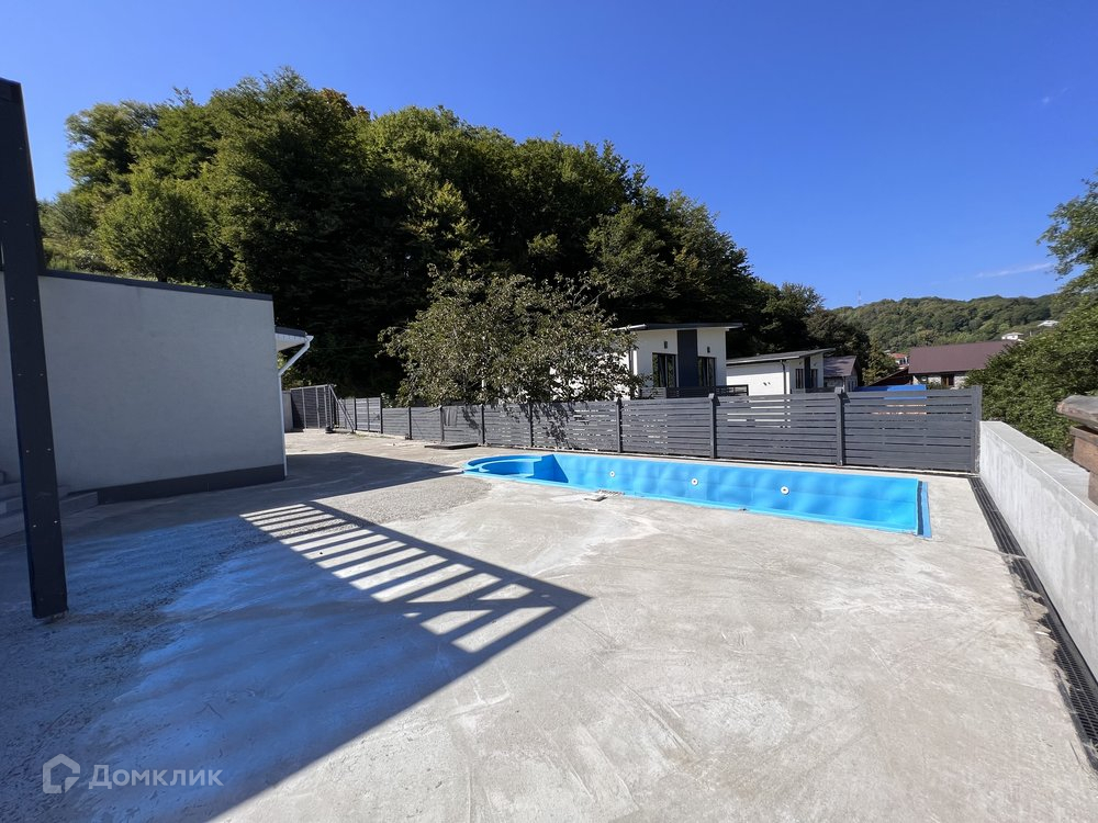 На участке (5 соток) есть места для автомобилей, зона отдыха, барбекю, большой бассейн.