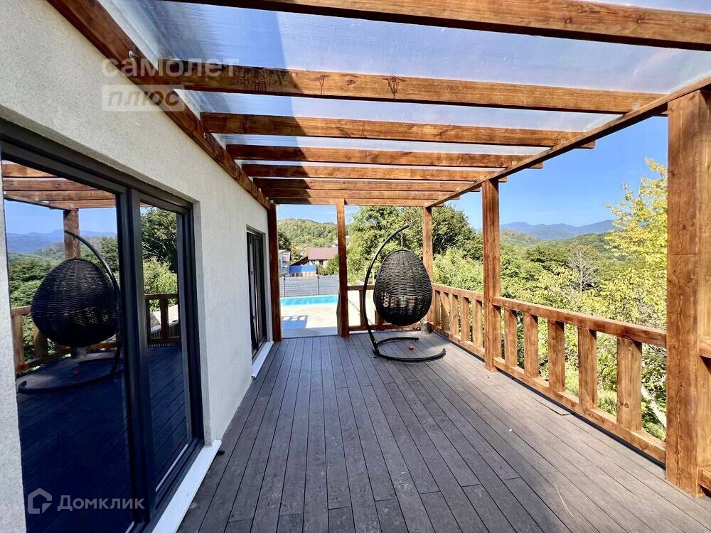 На участке (5 соток) есть места для автомобилей, зона отдыха, барбекю, большой бассейн (с подогревом).