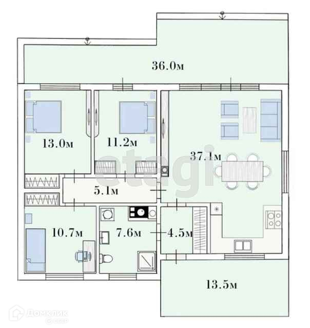 Площадь 130м².