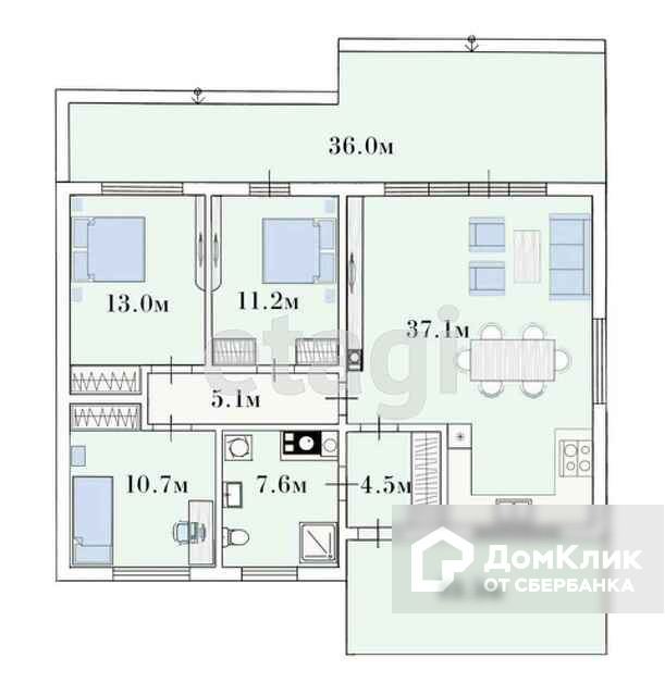 Общая площадь 126.6 м2