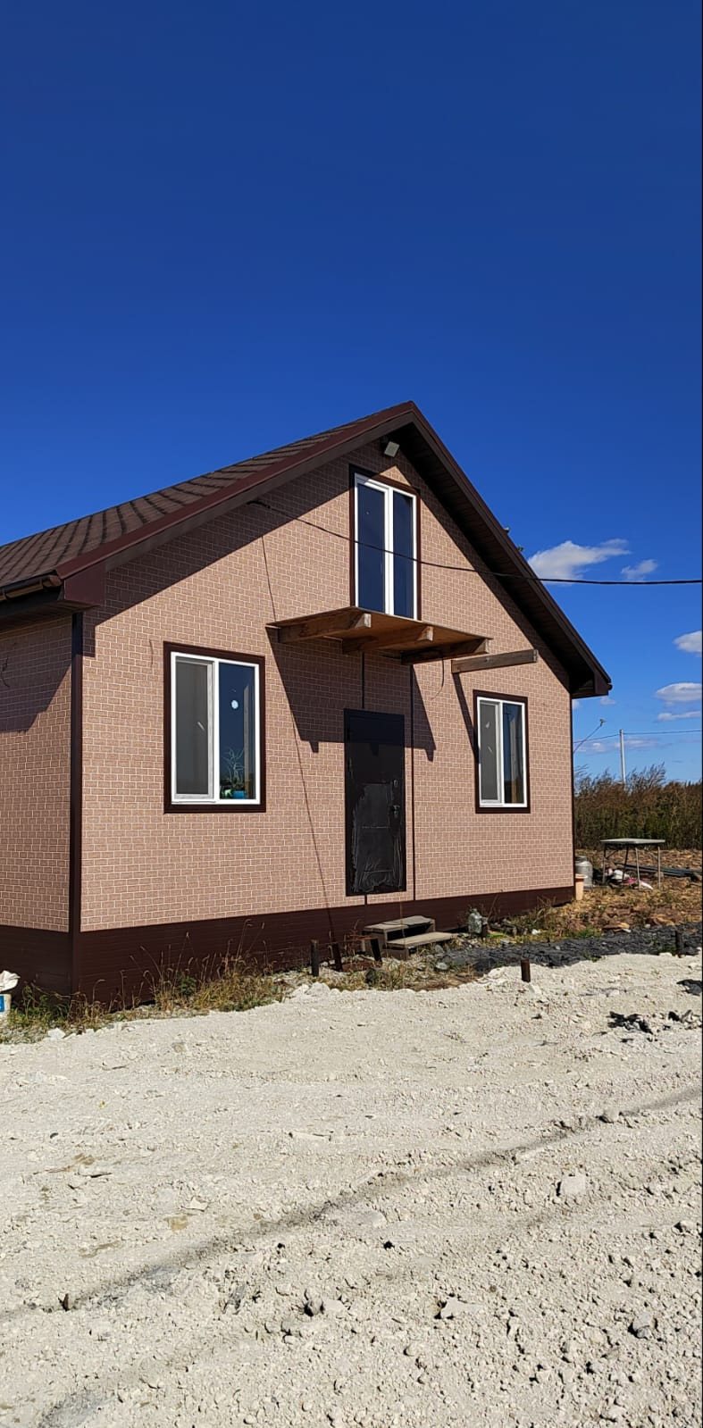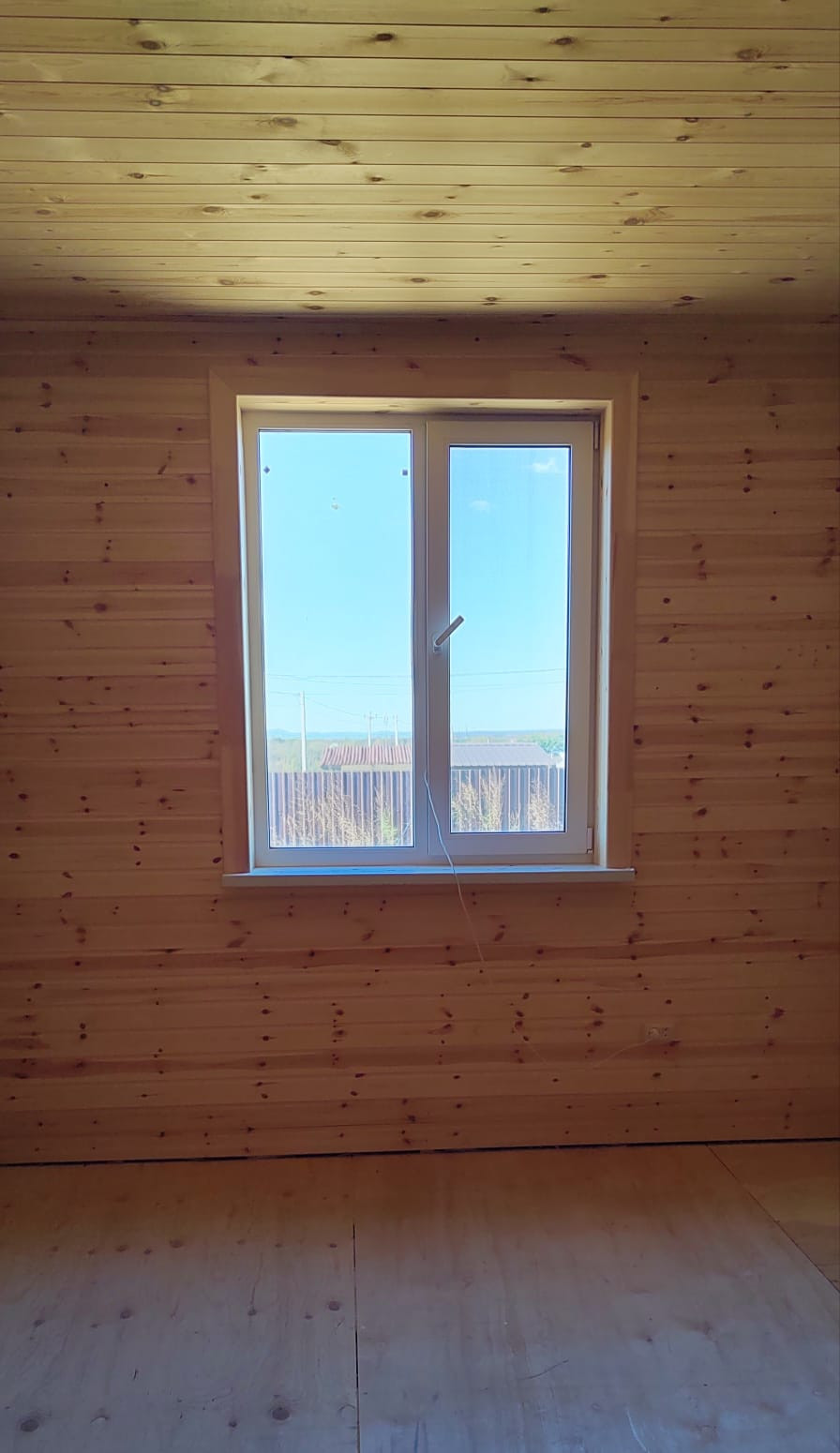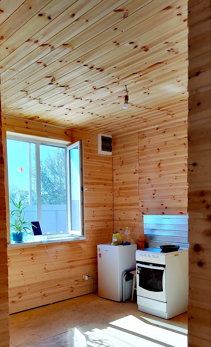 Деревянный каркасный дом площадью 114.6 кв.м., готов к заселению. Дом утеплён, обшит "Ханья", крыша покрыта мягкой кровлей, фундамент свайный. Внутренняя отделка - евровагонка, установлены пластиковые окна, межкомнатные двери, уставлен водонагреватель. В доме централизованное водоснабжение, отопление электрическое (конвекторы). Электричество 15 кВт. В доме расположены гостиная, 2 комнаты, кухня, совмещенный санузел. Есть мансардный этаж, на котором возможно обустроить жилую комнату.