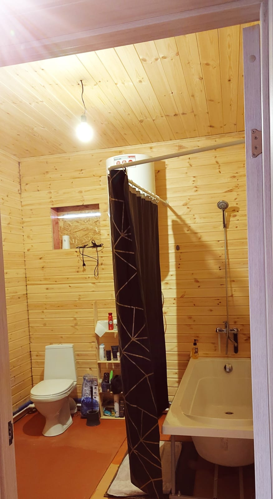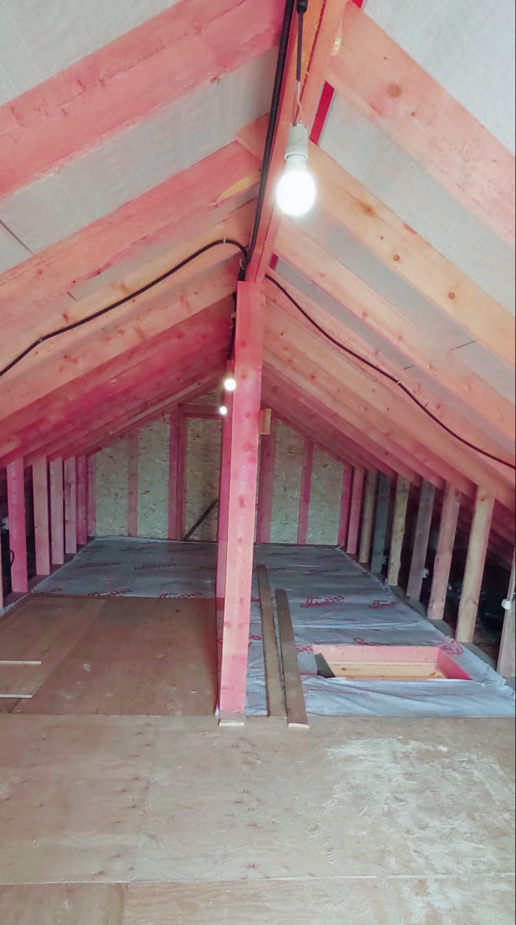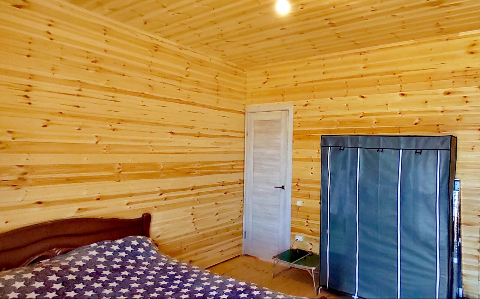 Деревянный каркасный дом площадью 114.6 кв.м., готов к заселению. Дом утеплён, обшит "Ханья", крыша покрыта мягкой кровлей, фундамент свайный. Внутренняя отделка - евровагонка, установлены пластиковые окна, межкомнатные двери, уставлен водонагреватель. В доме централизованное водоснабжение, отопление электрическое (конвекторы). Электричество 15 кВт. В доме расположены гостиная, 2 комнаты, кухня, совмещенный санузел. Есть мансардный этаж, на котором возможно обустроить жилую комнату.