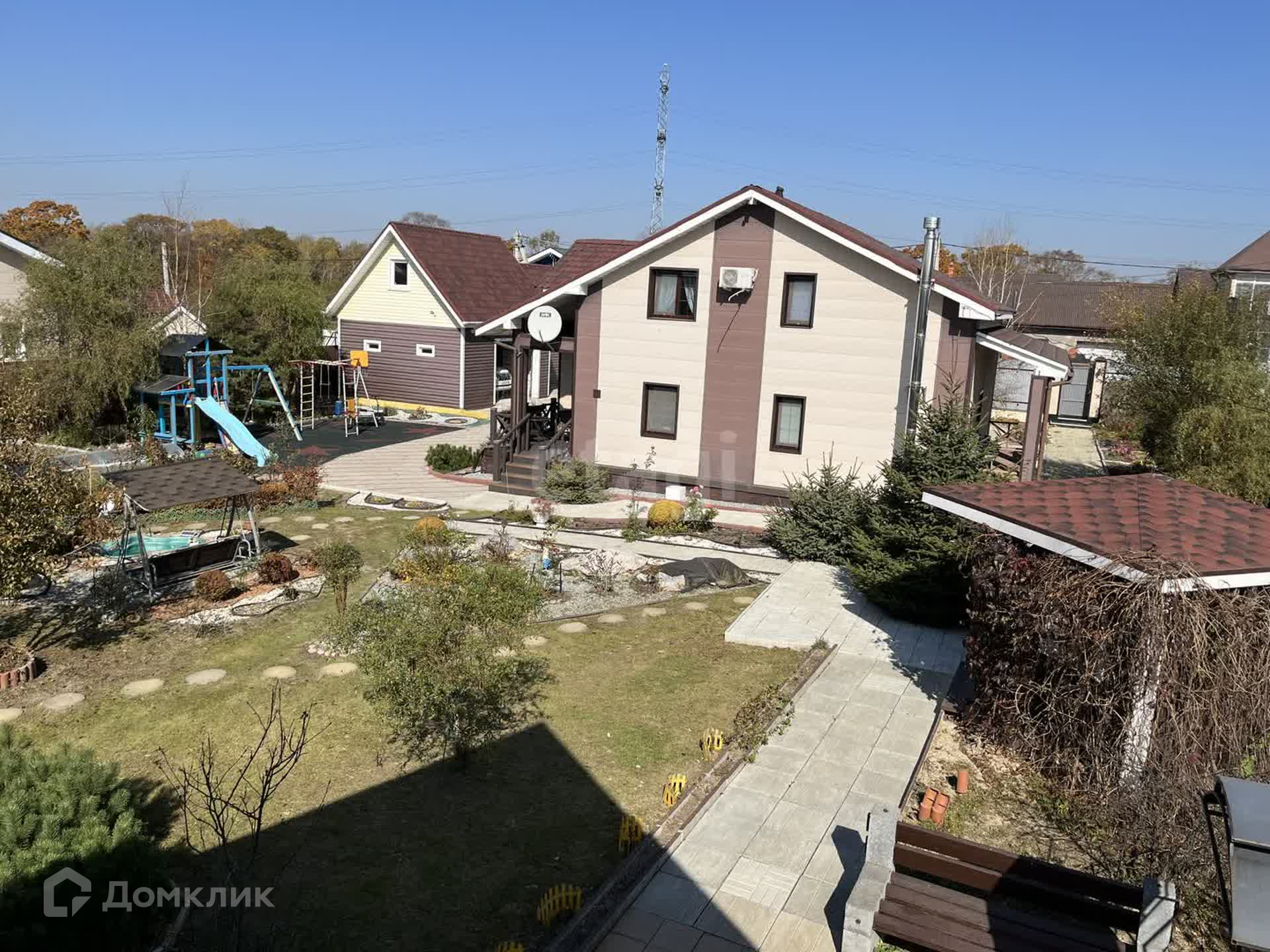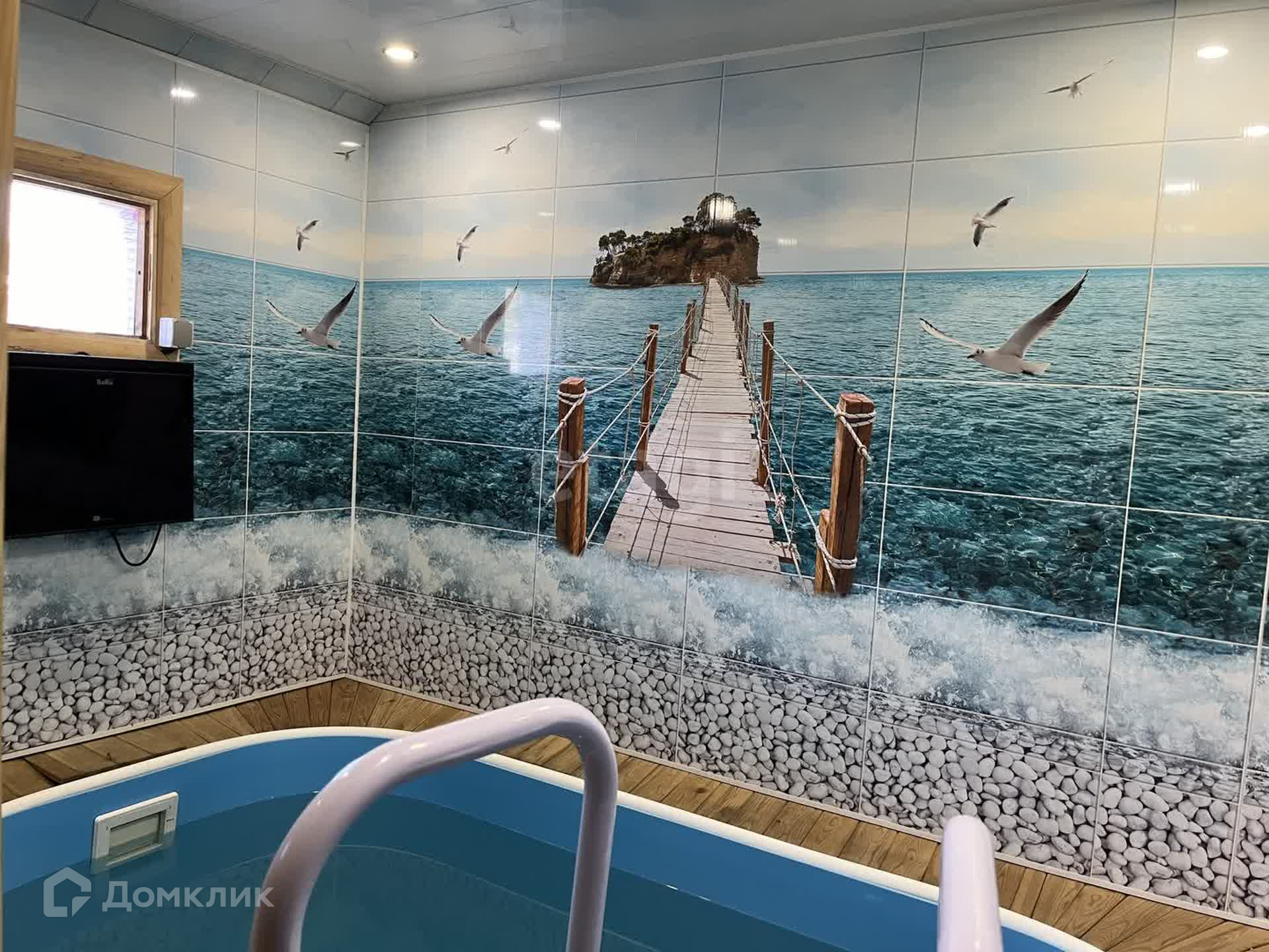 Двухэтажная баня из бруса площадью 75 кв.м с бассейном. Также имеется хоз. блок, теплица, беседка, детская игровая площадка, мангальная зона, большое парковочное место возле дома. Подходит под ипотеку.