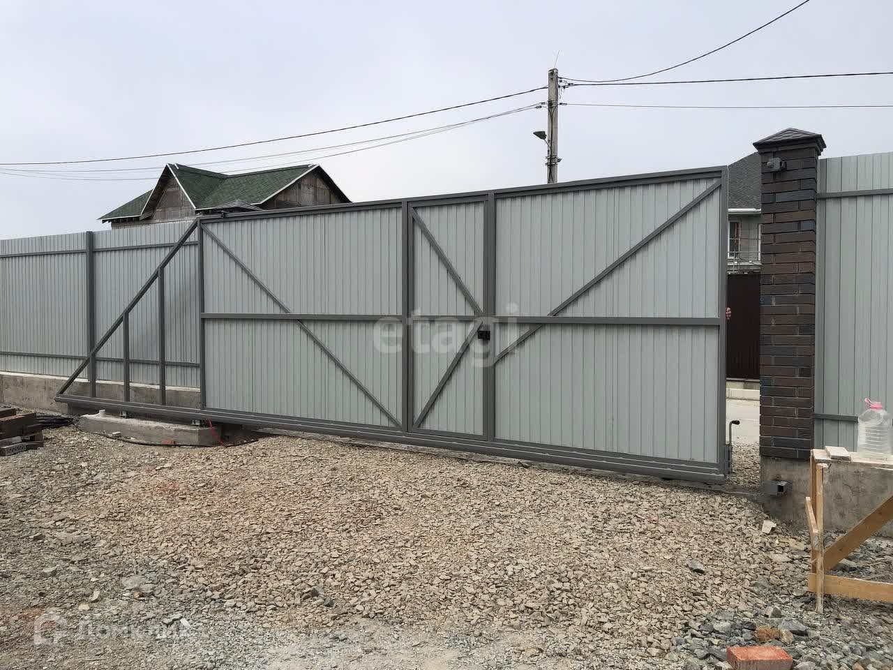 Ворота откатные. Электричество подведено.