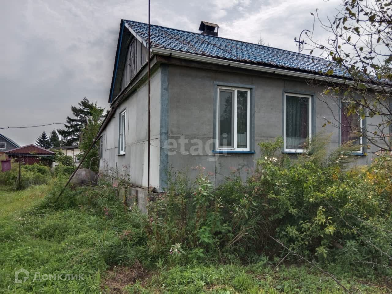 Дом деревянный, на фундаменте из бетонных блоков, окна пластиковые. Так же на участке имеются гараж, мастерская (когда-то использовалась как летняя кухня), баня, колодец с питьевой водой и прочие хоз. постройки. Туалет на улице. В постройках кое-где требуется ремонт.
