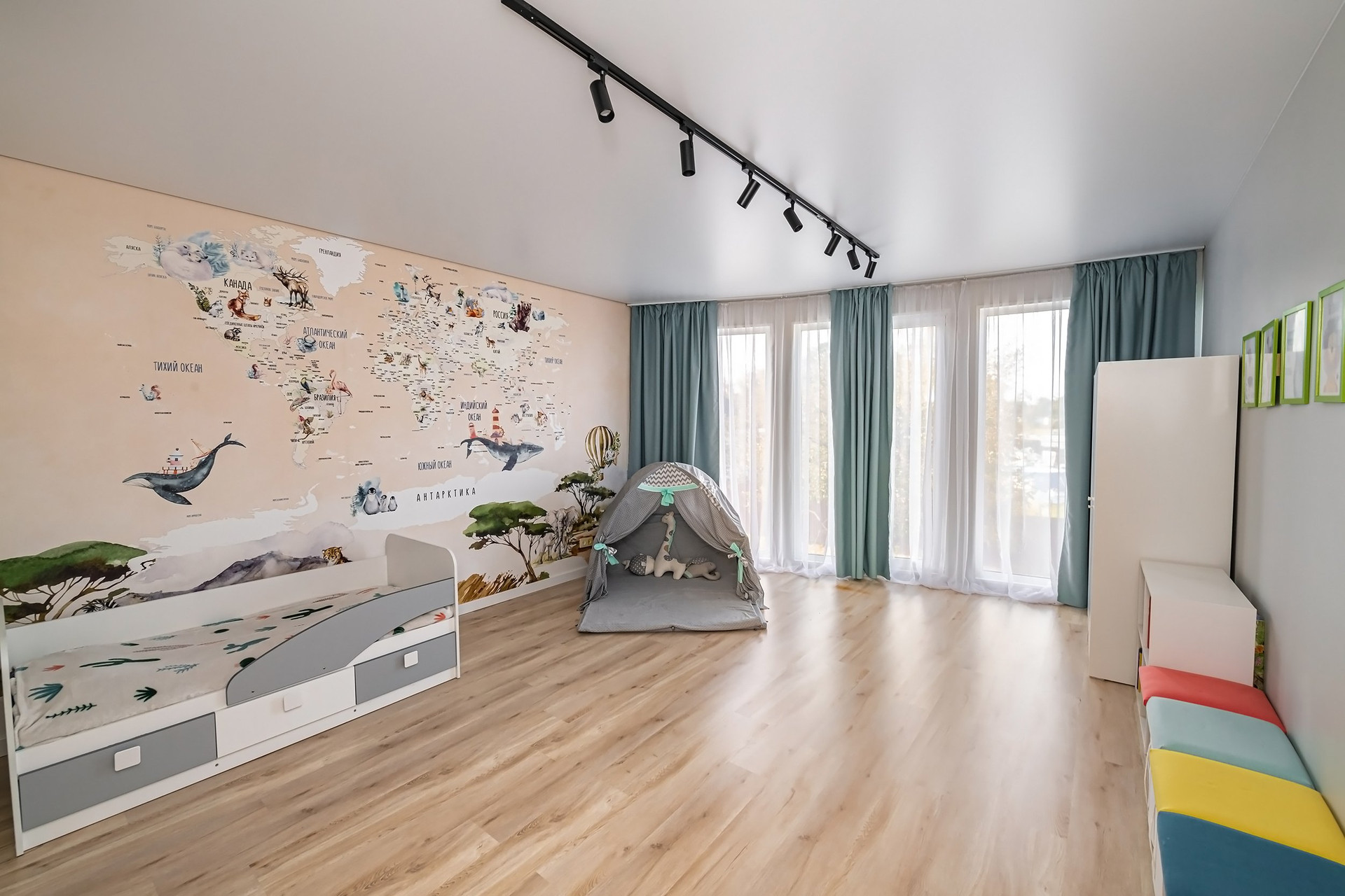 Большое количество витражных окон обеспечивает изобилие естественного освещения и создает уютную атмосферу.