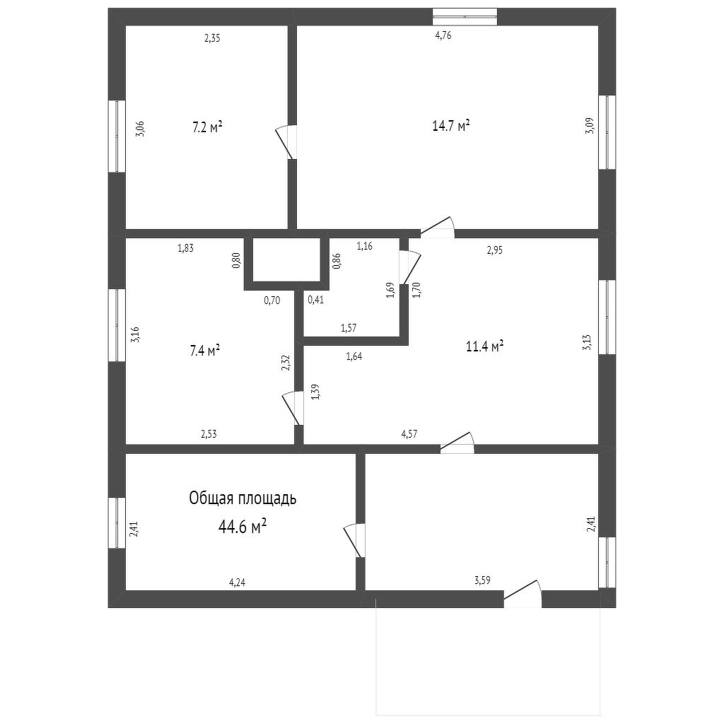 Общая площадь 44.6 м2