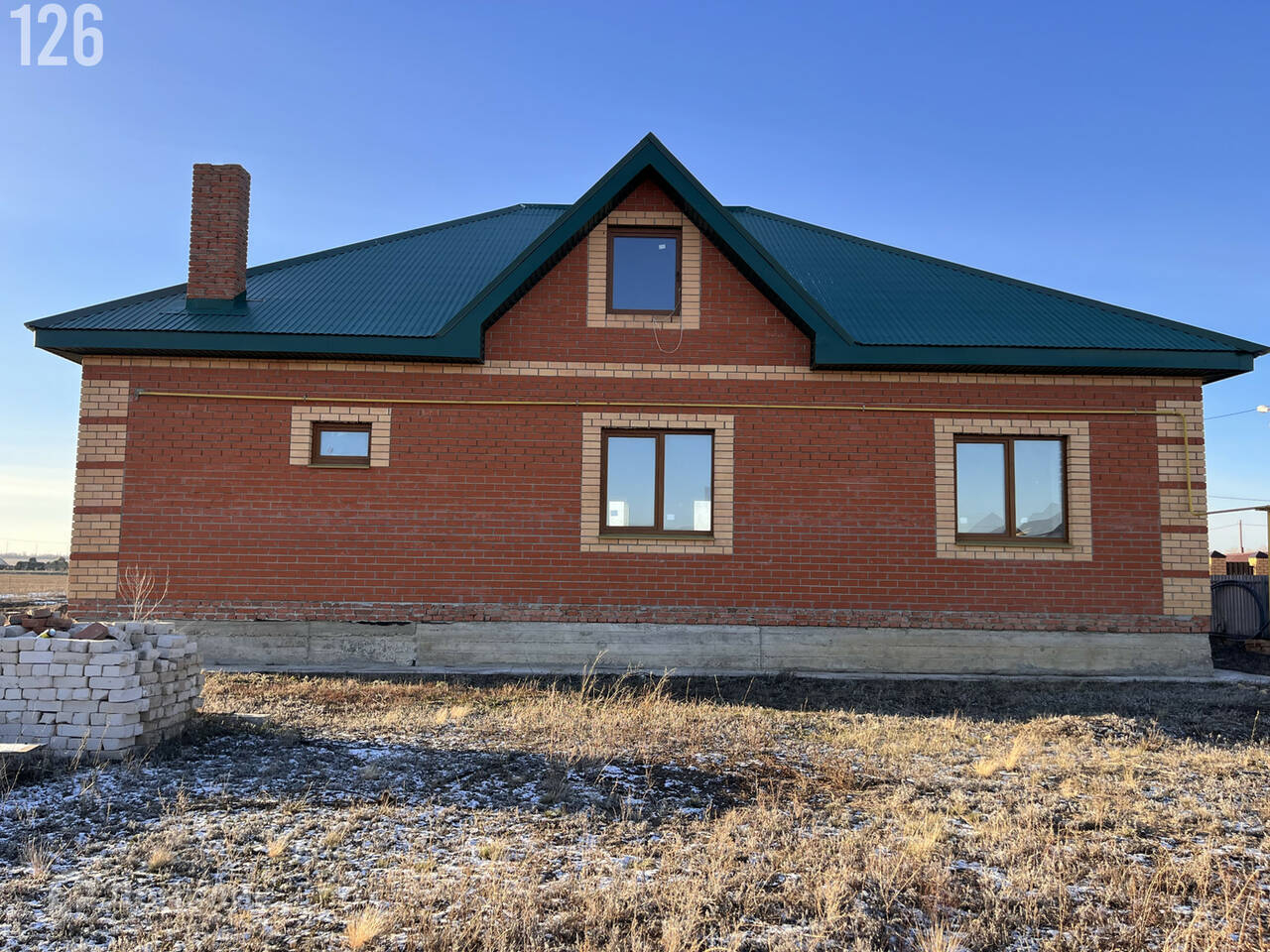 Дом одноэтажный, современного стиля, построенный в 2022 году на ленточном фундаменте, стены из кирпича ( а значит очень теплый), крыша – профлист. Общая площадь дома составляет 168 квадратных метров, жилая – 108, площадь кухни – 24 квадратных метра. В доме четыре комнаты (кухня-гостиная, две спальни, гостиная, большой холл, санузел раздельный, котельная ). Несущие стены из силикатного кирпича, утеплитель 100 мм. Толщина стен 60 см. Облицован Белебеевским кирпичом. Дом строился для себя, из качественных материалов, по всем строительным нормам. По всему дому проведен тёплый пол, установлены радиаторы. Газ, свет, вода подведены, разведена по всему дому электропроводка.