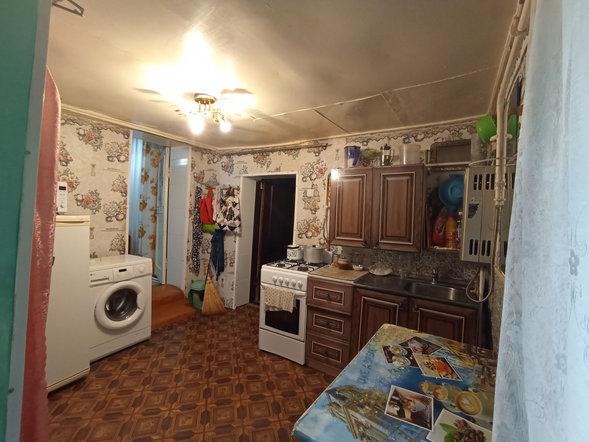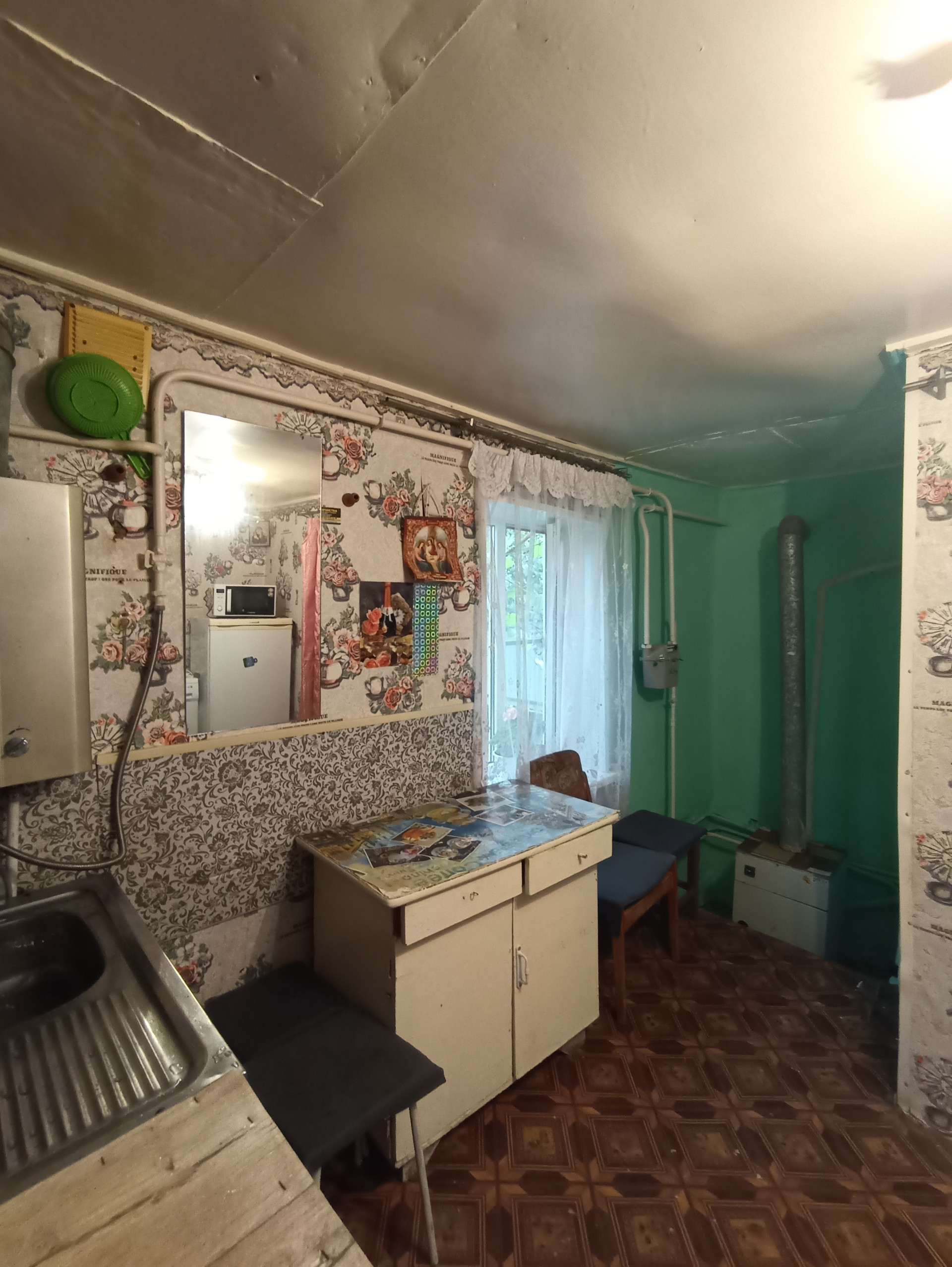 Дом старенький, но добротный. Все удобства в доме (свет, газ, вода), две смежные комнаты.