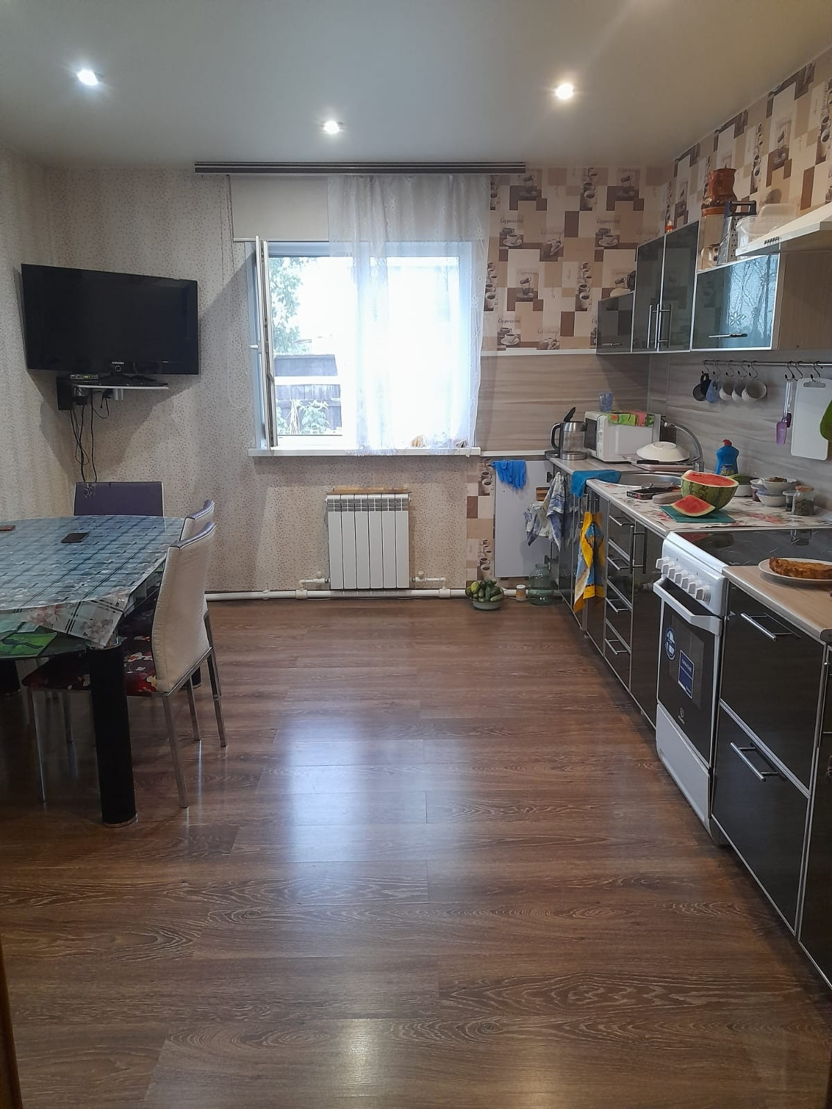 Продам дом в тихом месте. В доме 3 спальни, зал, большая кухня. Остаётся мебель необходимая для проживания. Окна пластиковые, натяжные потолки, на полу ламинат, линолеум. Отопление кател - комбинированный. Санузел в доме. Имеются постройки летняя кухня, сарай для инвентаря. Большой металлический гараж. Двор выложен брусчаткой.
