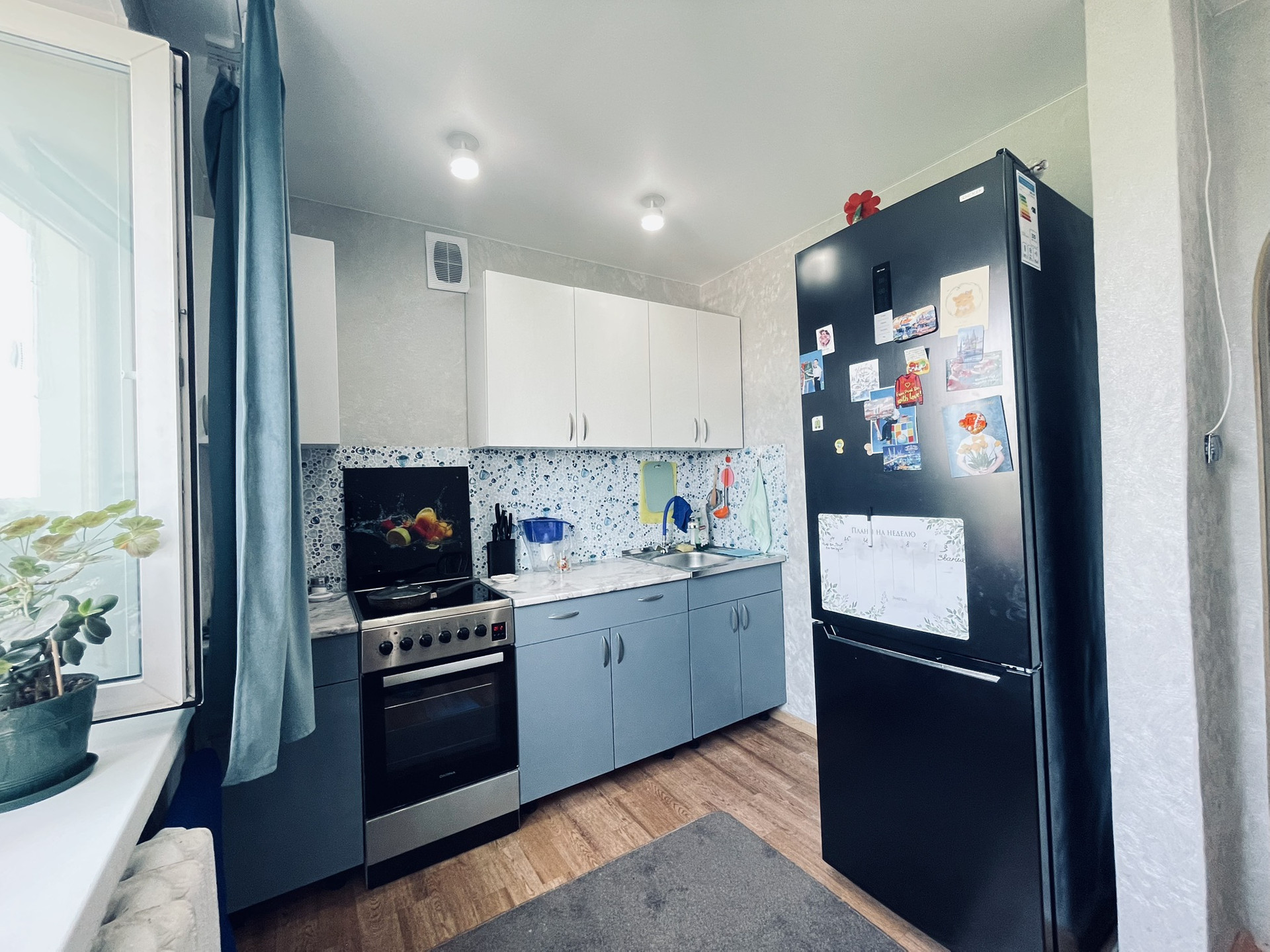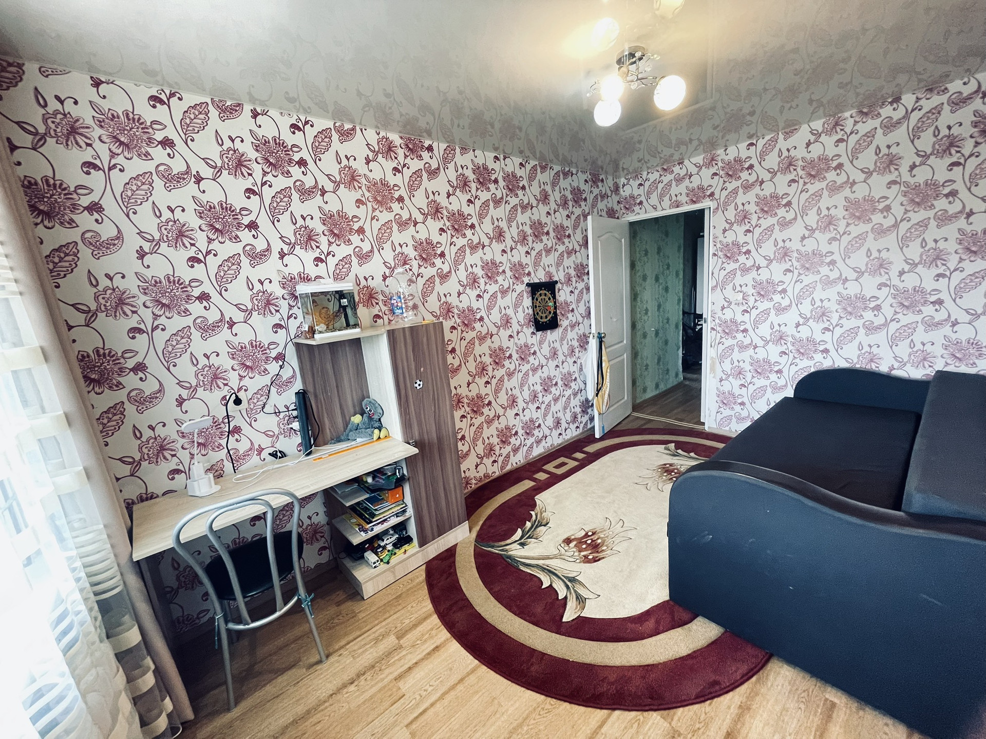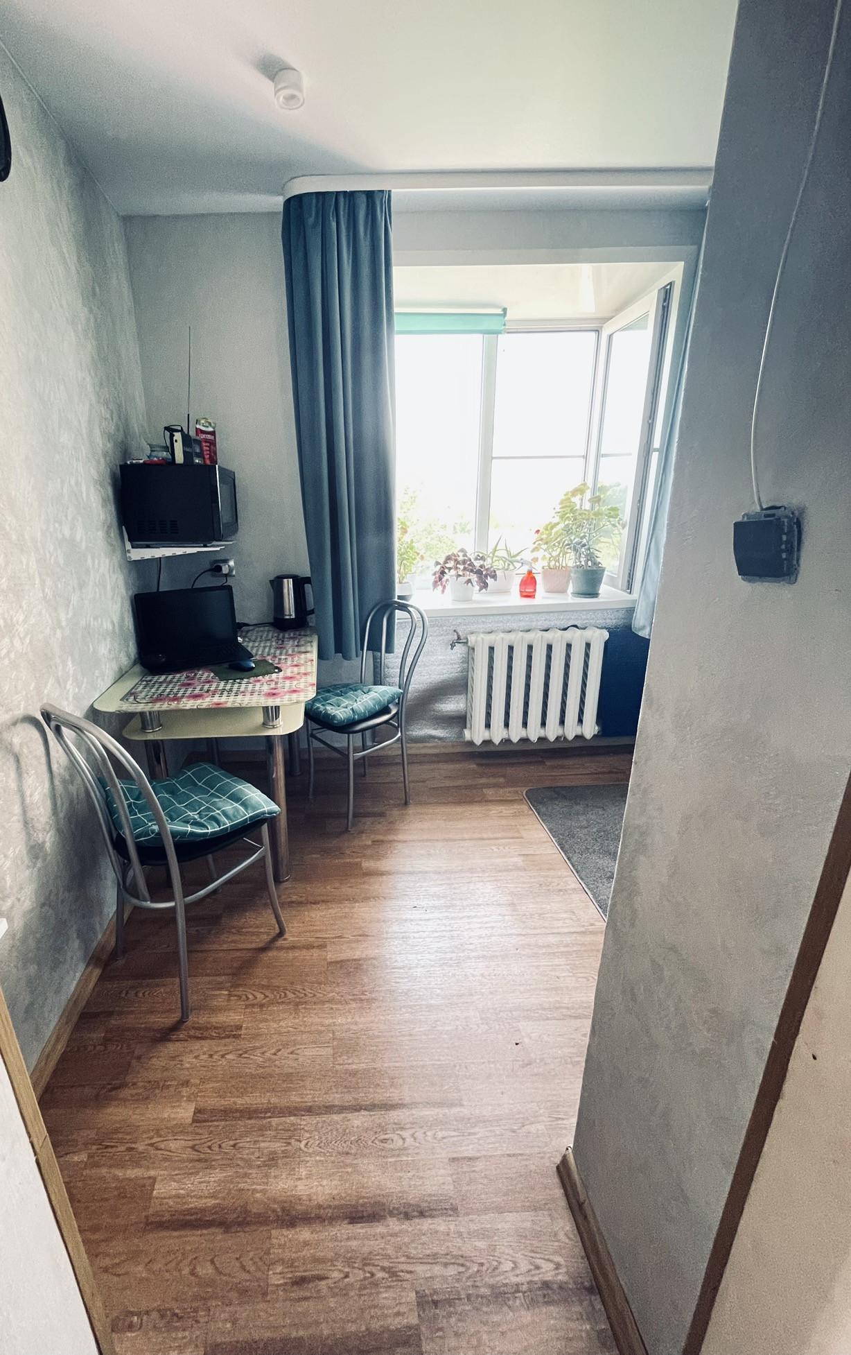 Пластиковые окна в каждой комнате. Лоджия застеклена. Соседи хорошие.