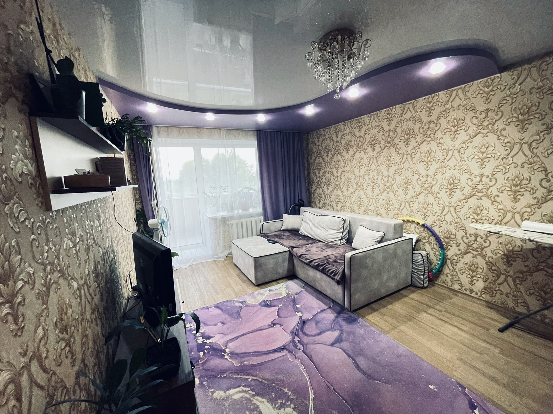 Квартира светлая, расположенная на 5 этаже, открывается прекрасный вид на природу. В прошлом году сделан ремонт в ванной комнате, на стенах и полу плитка уложена, установлен электрический полотенцесушитель. На кухне свежий ремонт, натянут натяжной потолок и  установлены новые светильники. Во всей квартире, кроме туалета и ванной натяжной потолок.