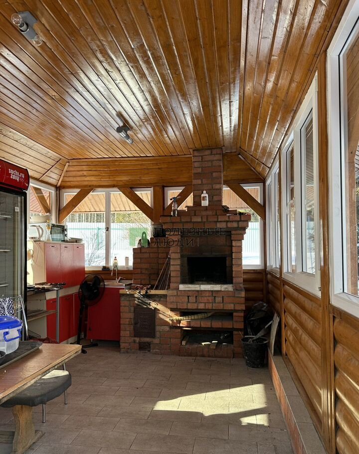 беседка с окнами, камином, коптильной, холодильником , проведенной водой, большим столом;