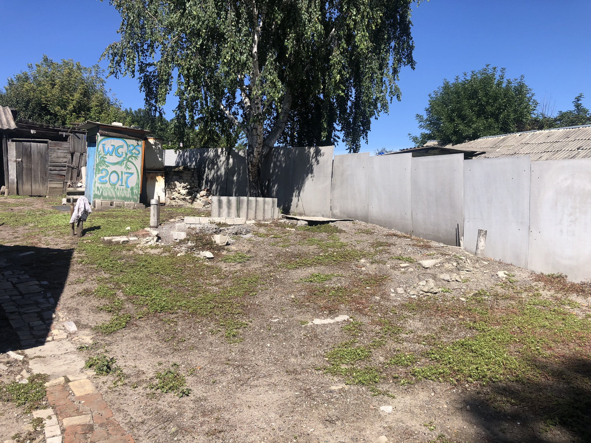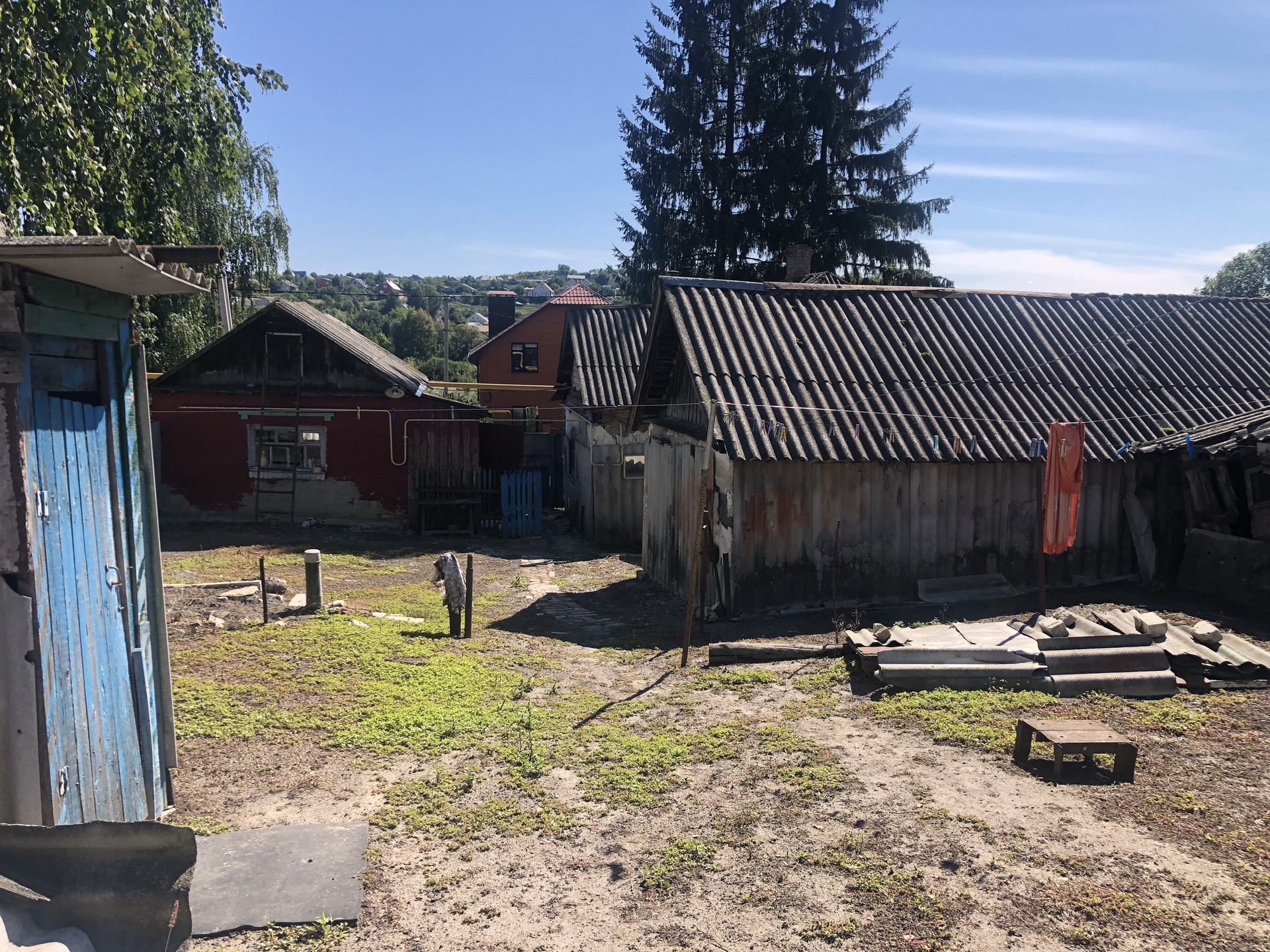 Свой двор. Огорожен. Хозяйственные постройки. Погреб. Есть обрабатываемый огород. Плодоносящий сад.