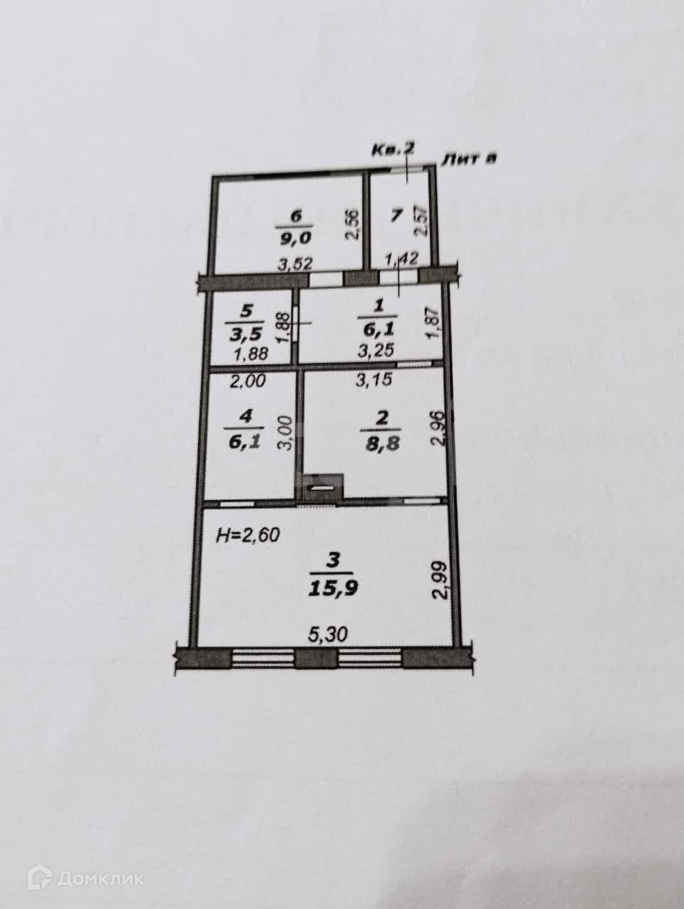 Общая площадь 49.4 м2