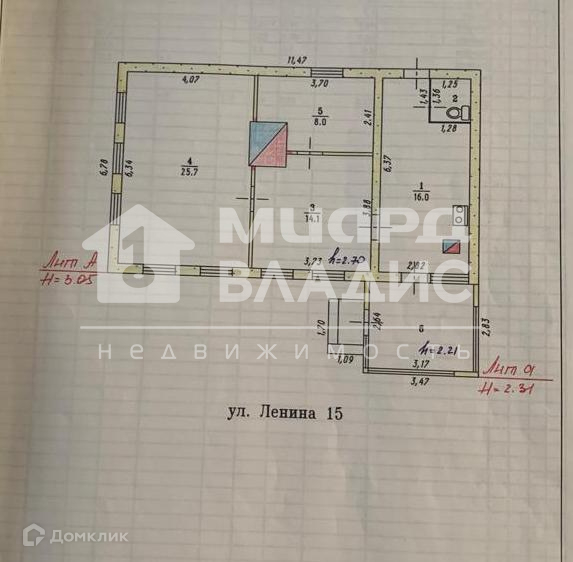 Общая площадь 65.5 м2
