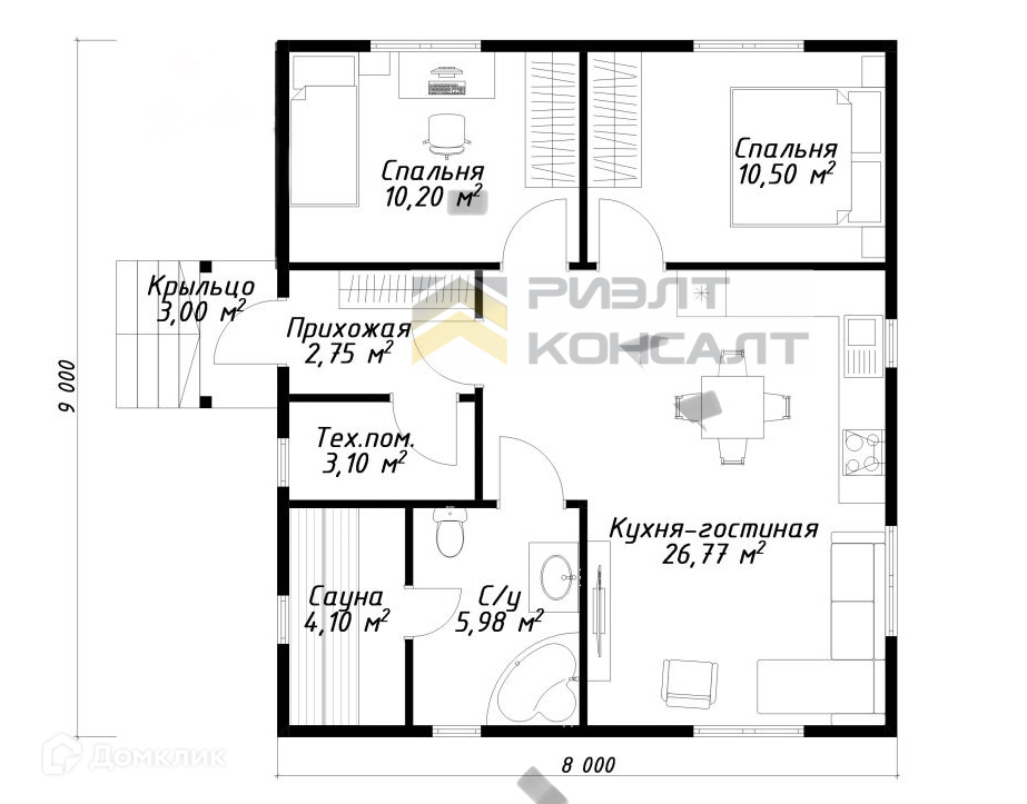 АН РИЭЛТКОНСАЛТ предлагает к продаже: уютный теплый дом, разработанный профессиональными конструкторами с учетом существующих строительных норм и правил. Данные дома строятся из строганых материалов камерной сушки с нормативным утеплением, правильной пароизоляцией, защитой от грызунов, вентиляцией и прочими необходимыми атрибутами деревянного дома. Дом устанавливается на винтовые сваи! Обязательная проверка домов аэродверью и тепловизором!
