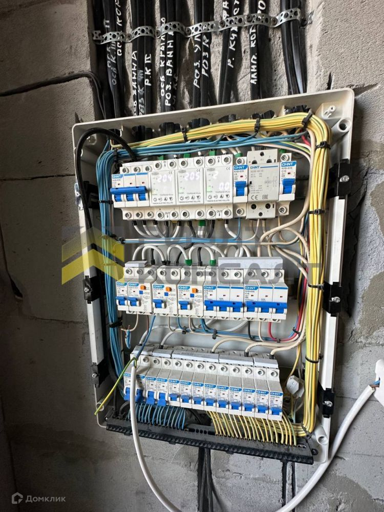 Полностью смонтирована система электроснабжения, заземления. Автоматика Sсhnеidеr Еlесtriс, мастер выключатель освещения, противопожарное УЗО, реле напряжения. Смонтировано фасадное освещение (через фотореле) и электроснабжение (в том числе и для новогодних гирлянд). Освещение крыльца через датчик движения, освещение террасы. Смонтирован дополнительный щит для слаботочных систем.