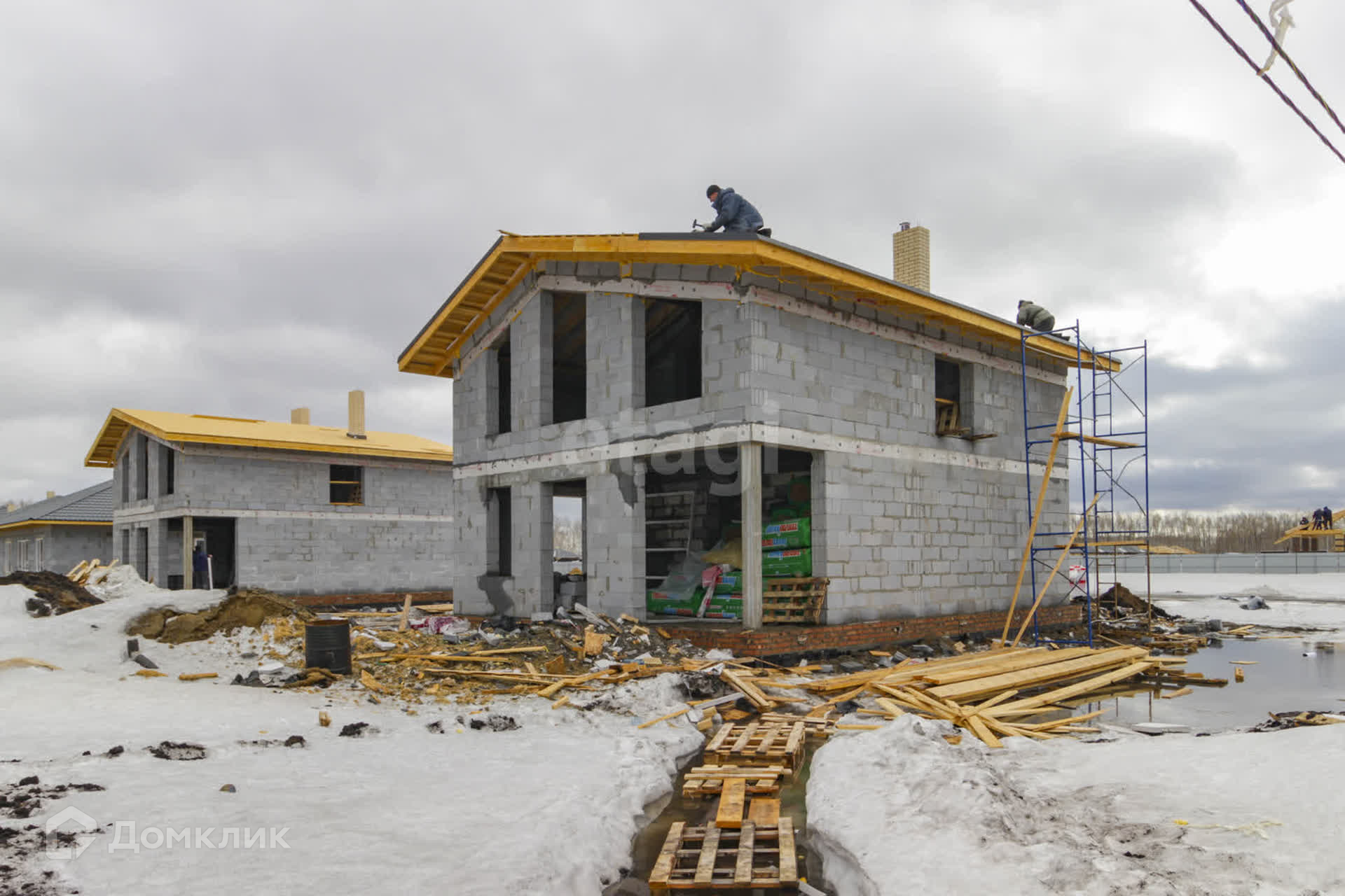 В продаже коттедж на этапе застройки. Строительство ведётся в новом охраняемом коттеджном посёлке GreenPark, где есть все необходимые коммуникации.
