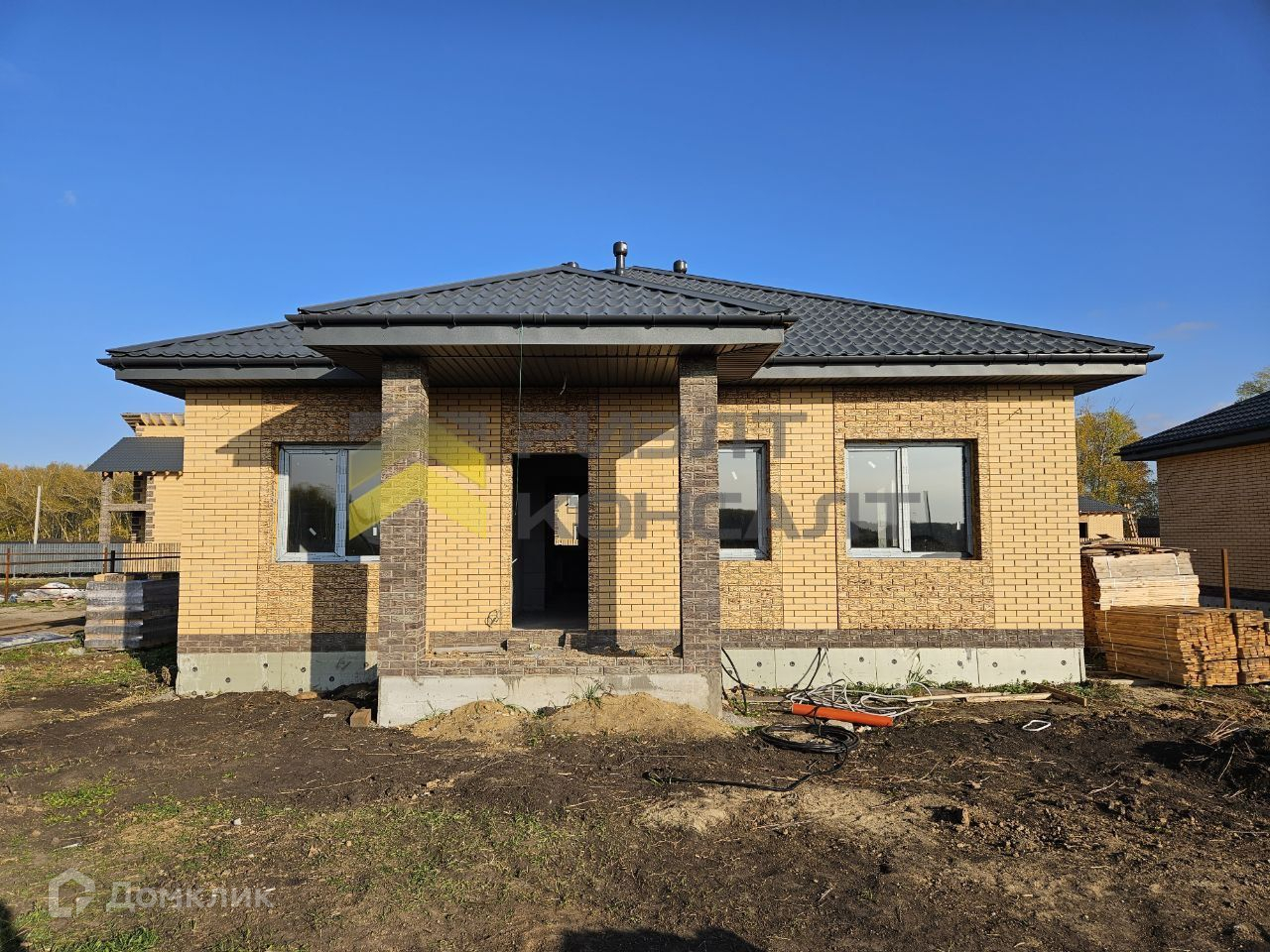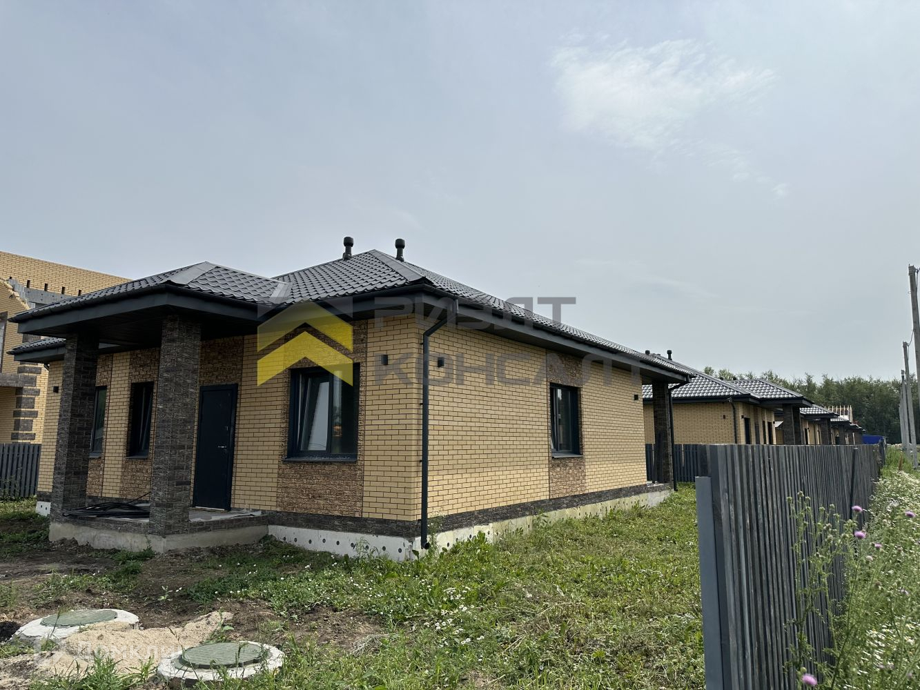 Ленточный фундамент, дом из кермзитоблоков с утеплителем и облицовочным кирпичом. Сделан теплый пол и разводка электричества. Центральный водопровод, канализация септик, электричество, газ. Забор из евроштакетника на 3 стороны.