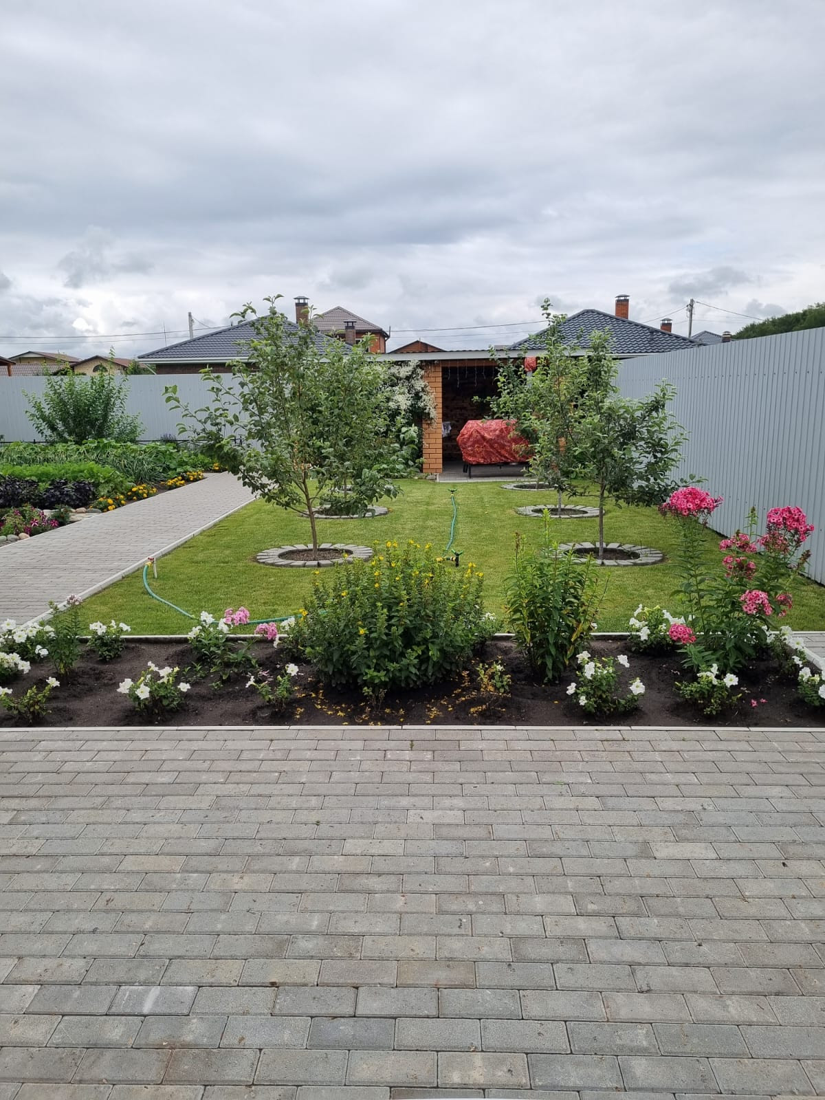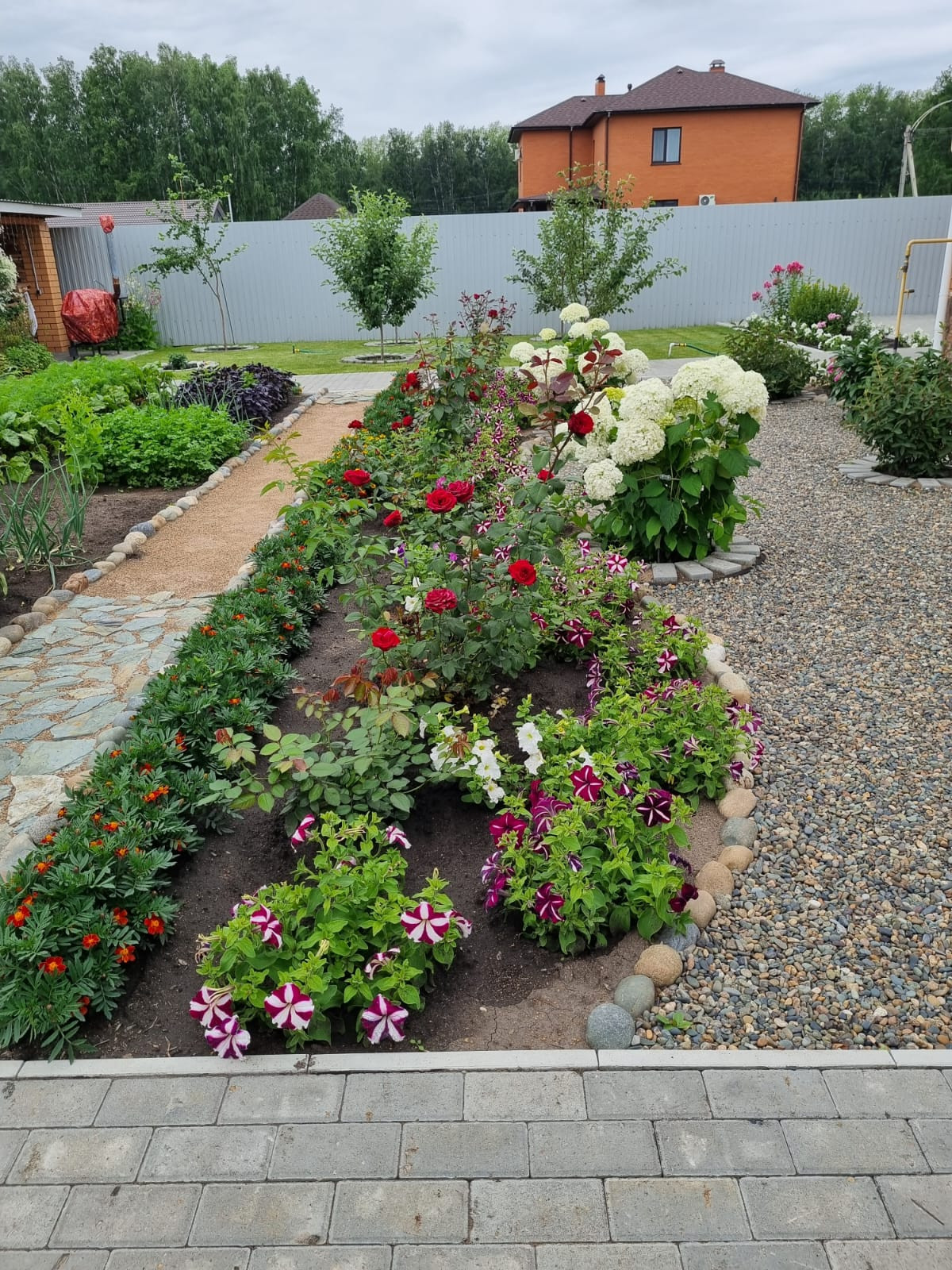- Большой, ухоженный участок. Придомовая территория зонирована: газон и тротуарная плитка. Огород с посадками: яблони, жимолость , смородина, черешня. Также на участке имеются хвойные посадки и очень много многолетних цветов.