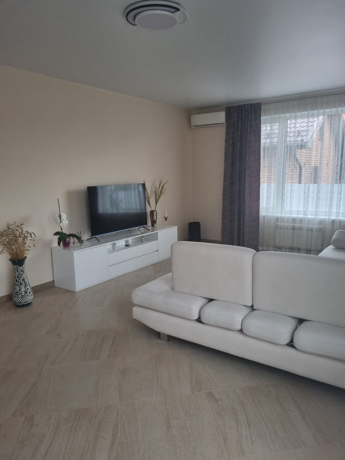 - Дом полностью готов для проживания, подключены все  коммуникации: электричество 380, вода (городская), канализация, газ магистральный. По всему дому  выполнен теплый пол (водяной), перекрытия Ж/Б плита.