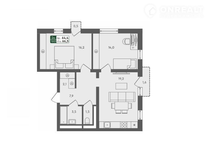 Общая площадь 66.5 м2