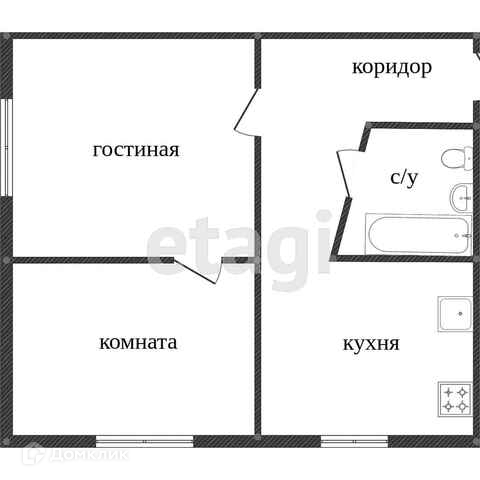 Общая площадь 43.5 м2