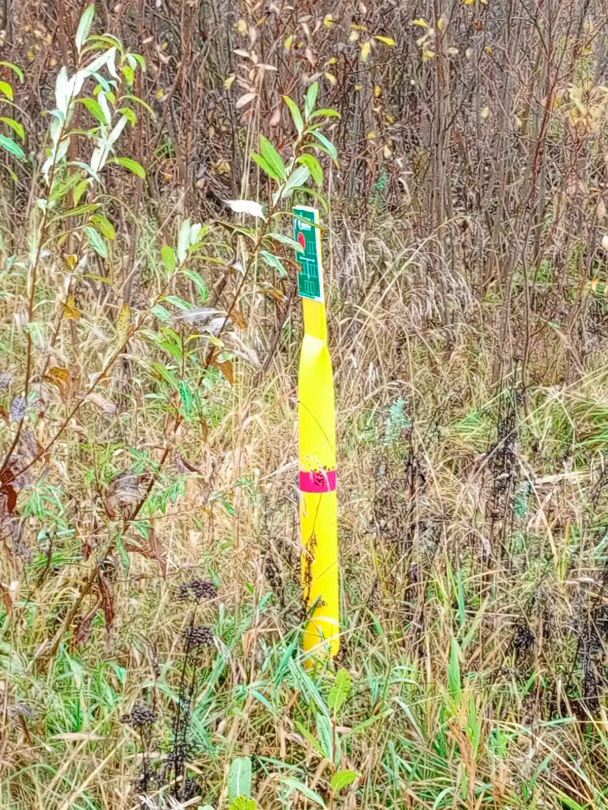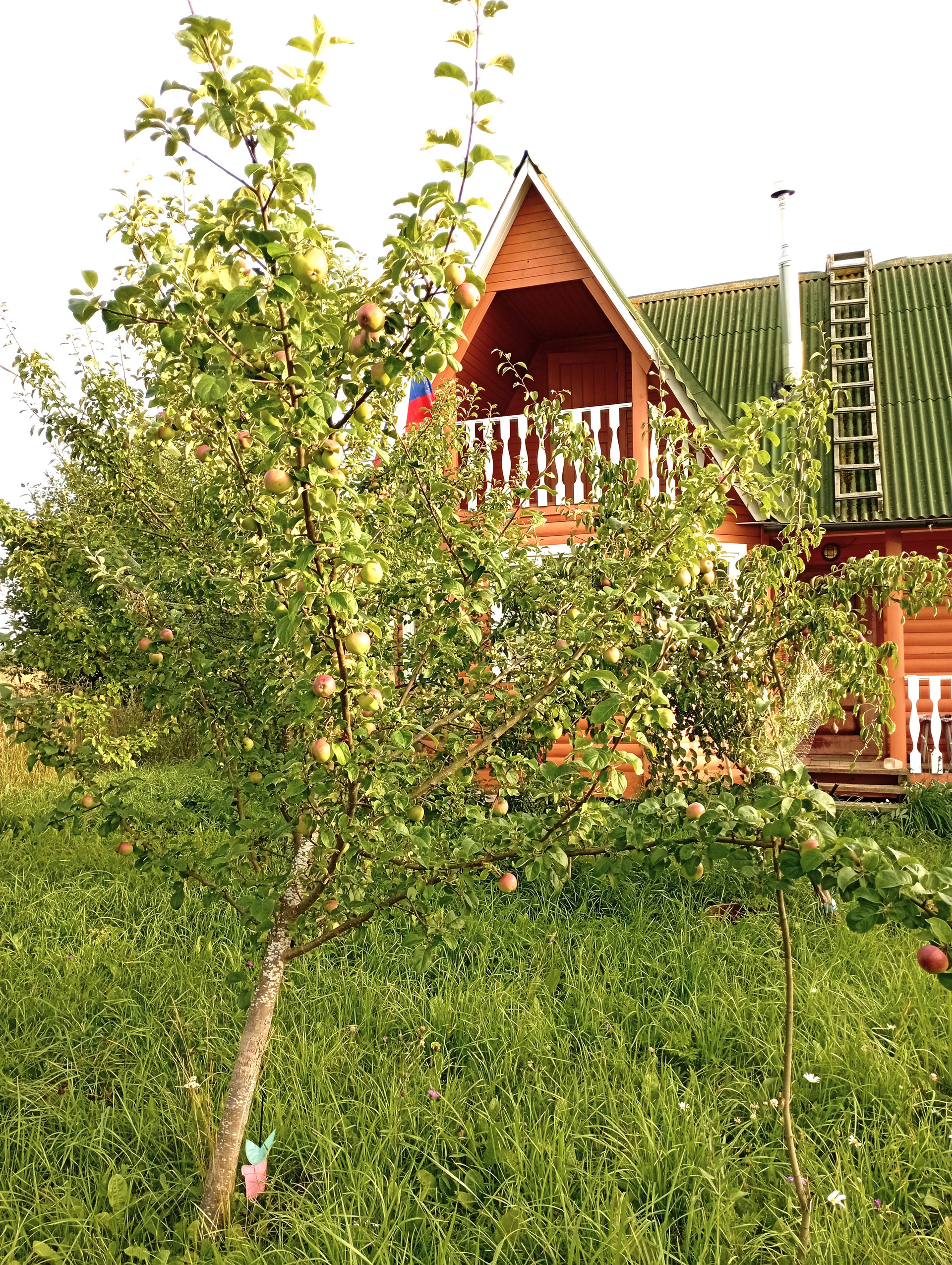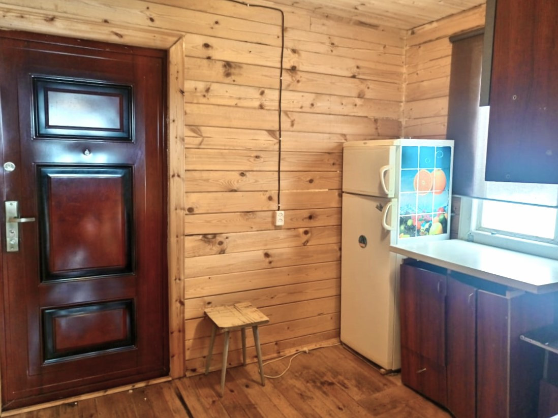 Участок крайний к лесу, поэтому нет соседей. На участке плодовые деревья и тех.постройка (хоз.блок).
