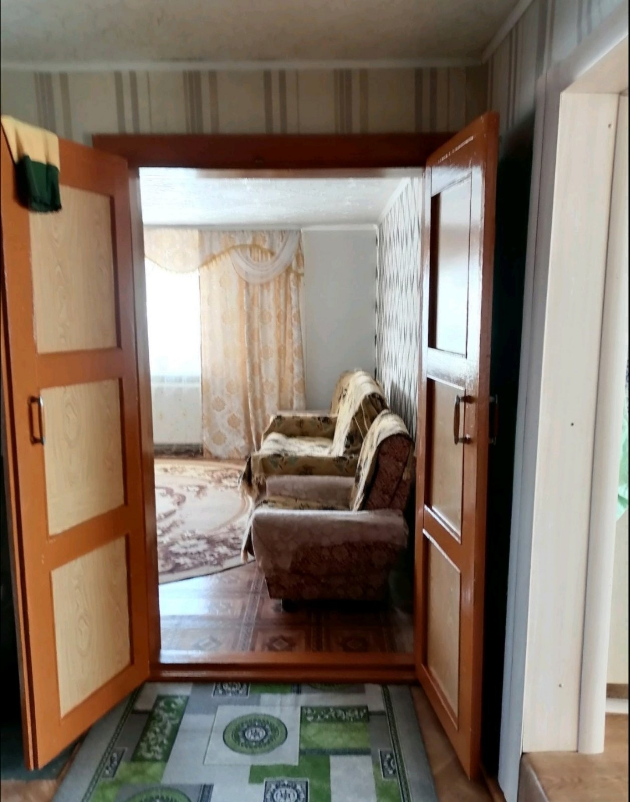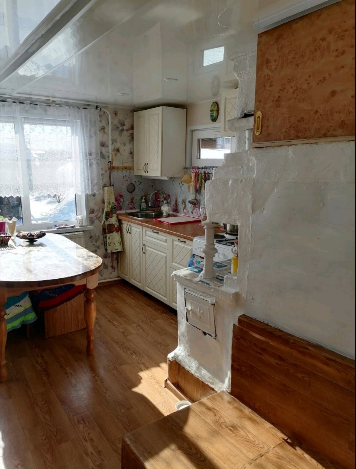 Выставлен на продажу дом в с. Пятково Упоровского района. В доме три комнаты и кухня. Площадь дома 65,8 кв.м: комнаты 16,6 кв.м, 10,3 кв.м, 20,0 кв.м, кухня 12,1 кв.м. Дом бревенчатый, крыша новая из металлопрофиля с водостоками. В доме сделан свежий ремонт, заменена электропроводка, окна пластиковые, на полу линолеум, на кухне и в коридоре - натяжные потолки. Отопление газовое, во время ремонта не стали убирать 2 печи, они функционируют. Русская печь на кухне своим теплом долгое время может сохранять уют и душевность в доме. Водоснабжение централизованное, кроме того есть колодец. Канализация проведена: обеспечен отвод воды на кухне, подключена стиральная машина-автомат. В доме устроено подполье и яма для хранения овощей. К дому пристроена большая веранда, летняя кухня. Баня новая (2 года), вход в баню с веранды. Старую баню разбирать не стали - в настоящее время используют под сарай. В огороде теплица из поликарбоната. Огород ухожен, на участке различные многолетние насаждения.Земельный участок 15 соток, предназначен для ведения личного подсобного хозяйства. Звоните. Договоримся о просмотре