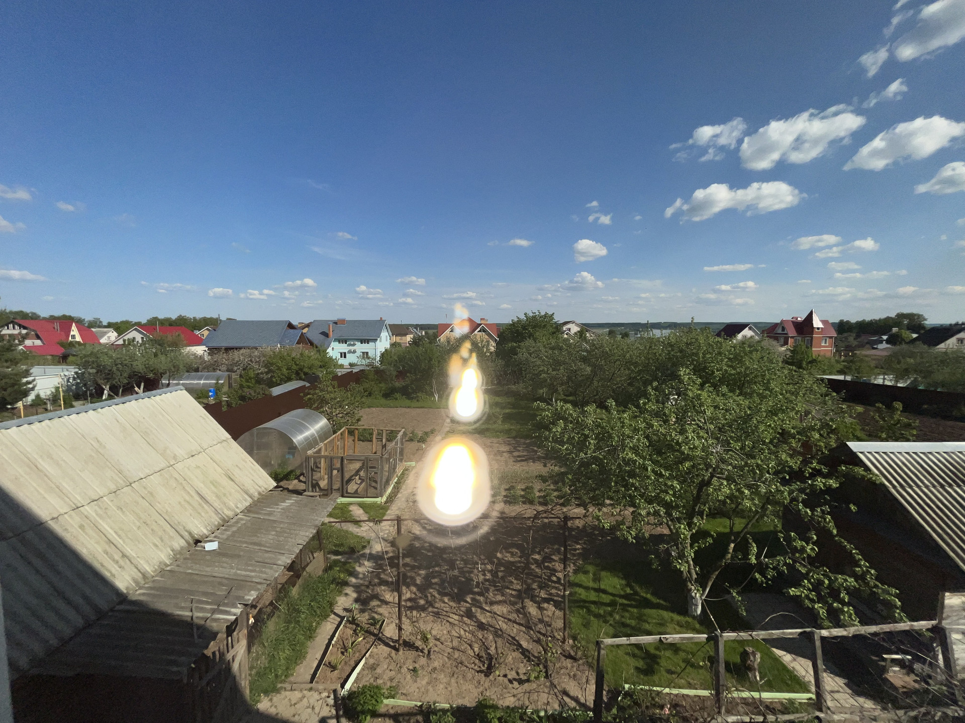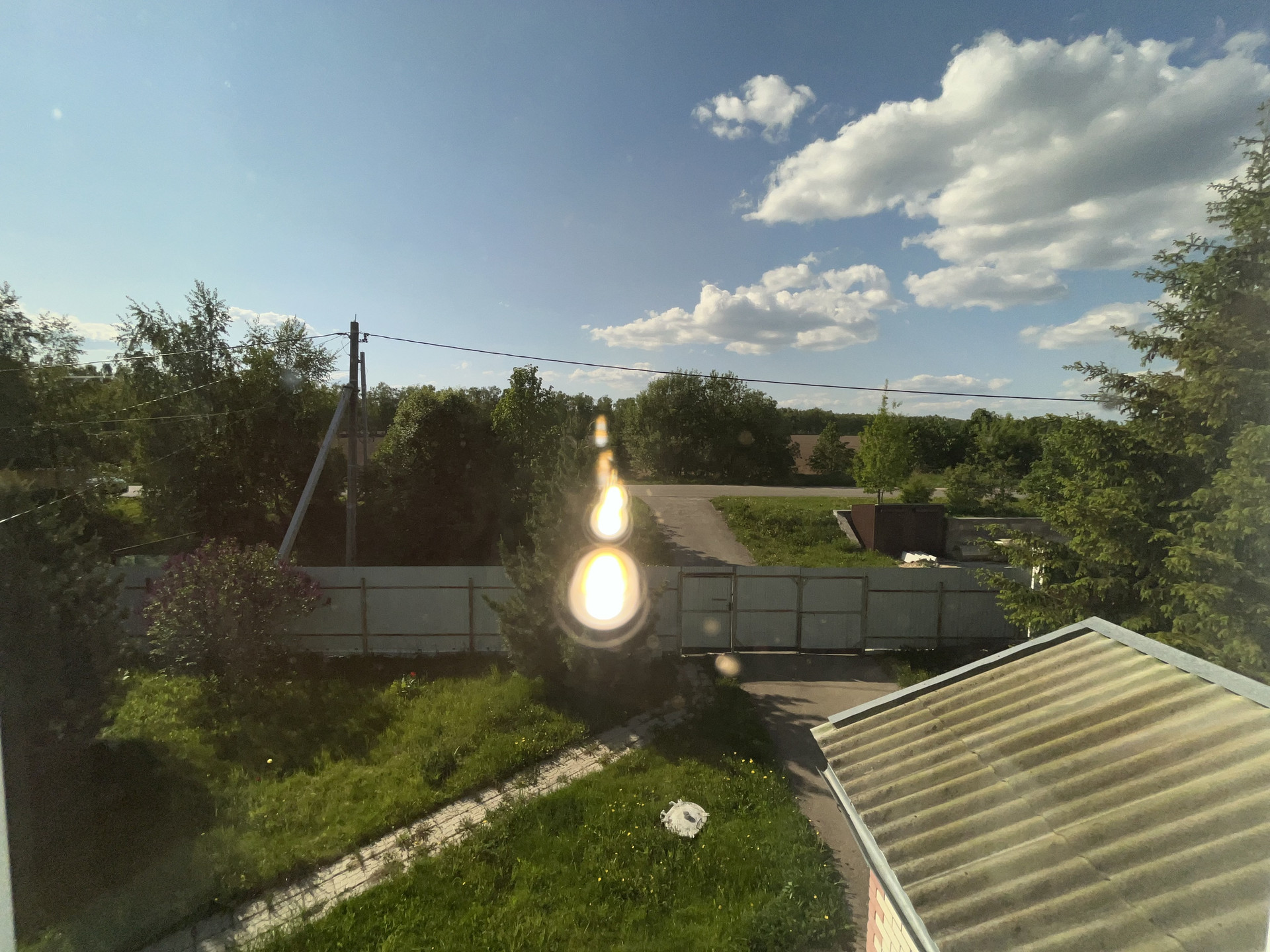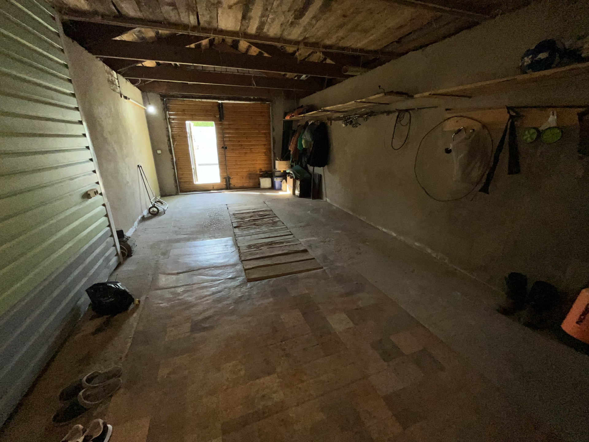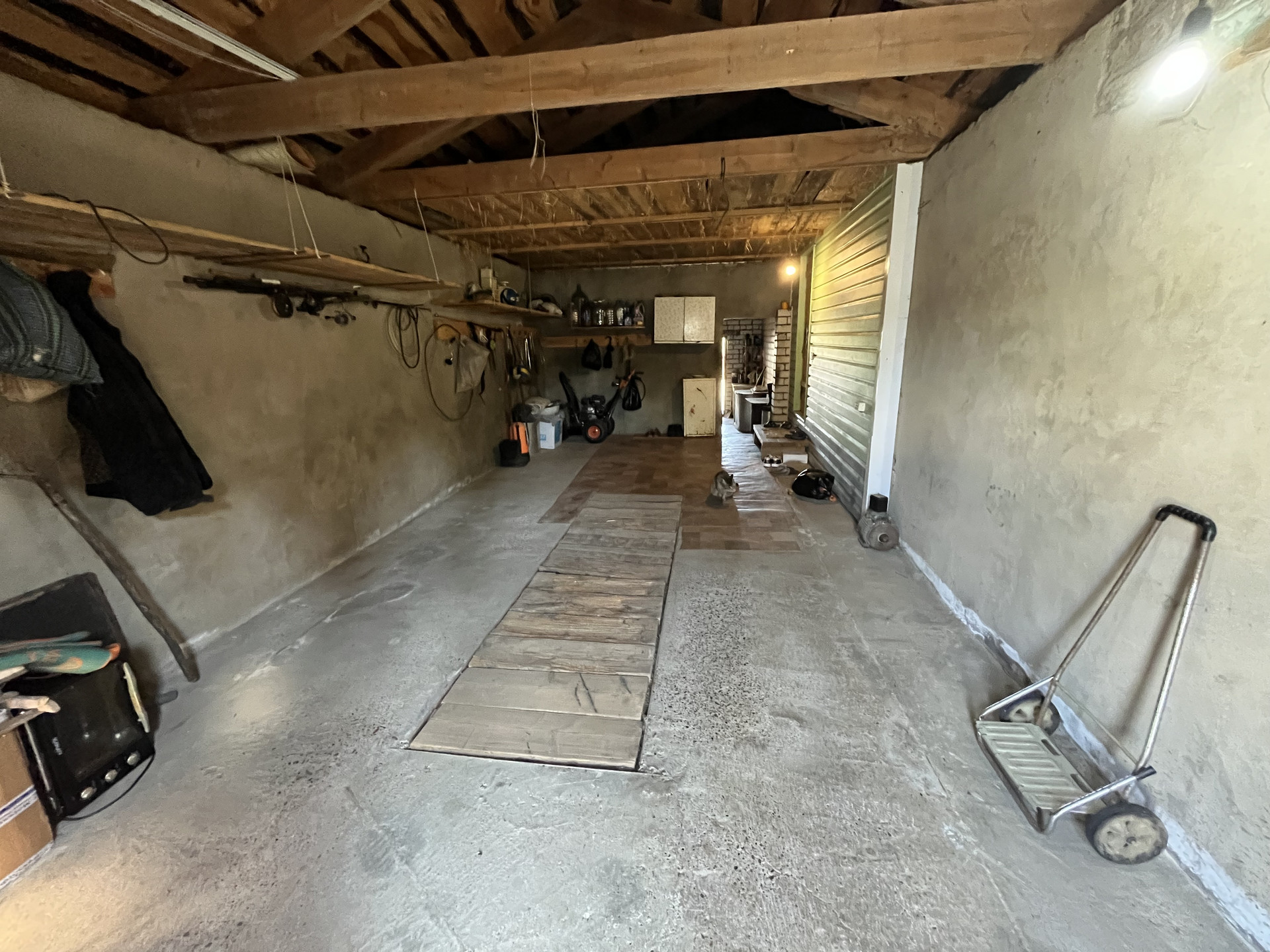 огорожен забором (профнастил), пристроенный гараж (с ямой), Кровля - металлическая