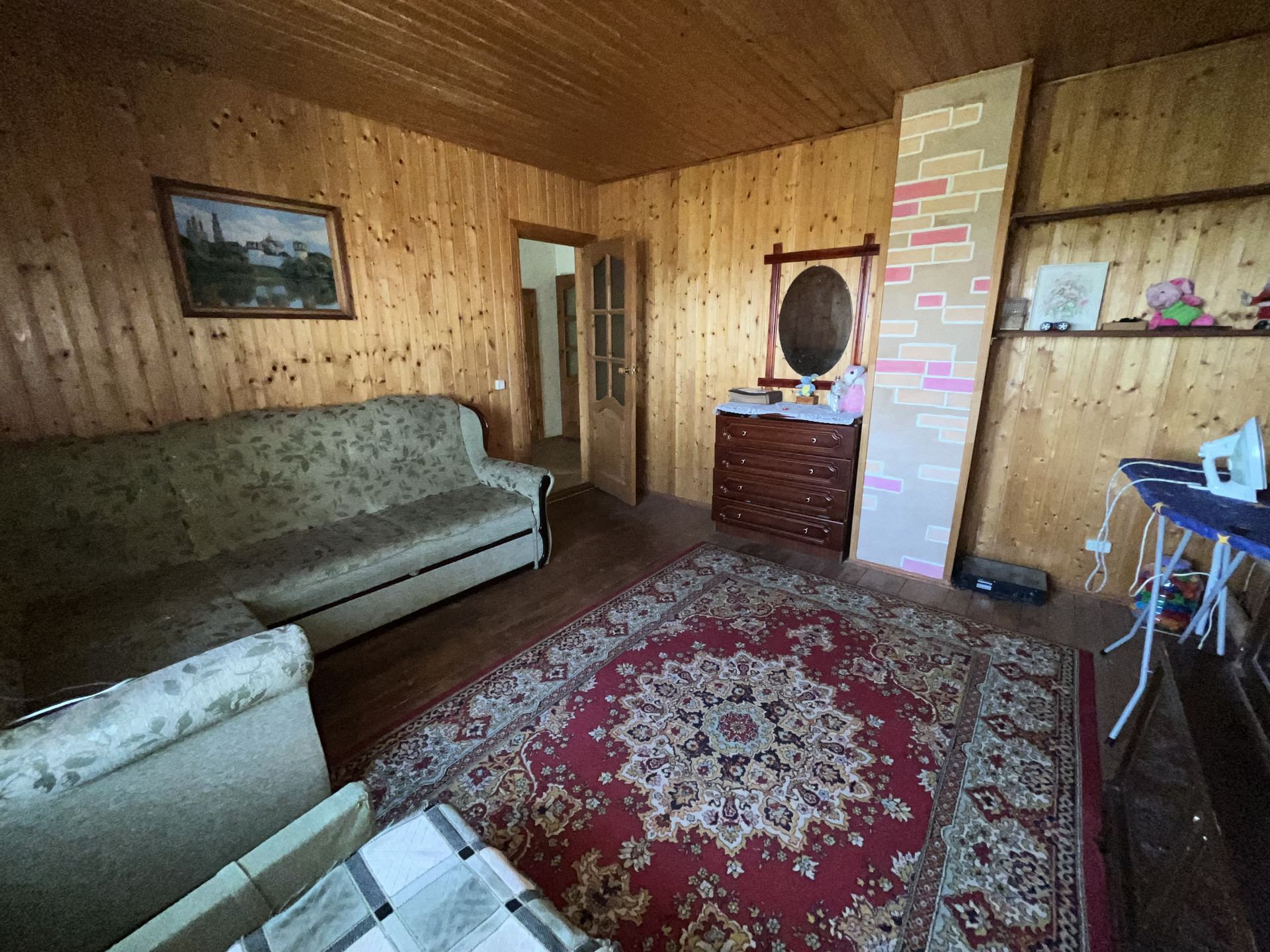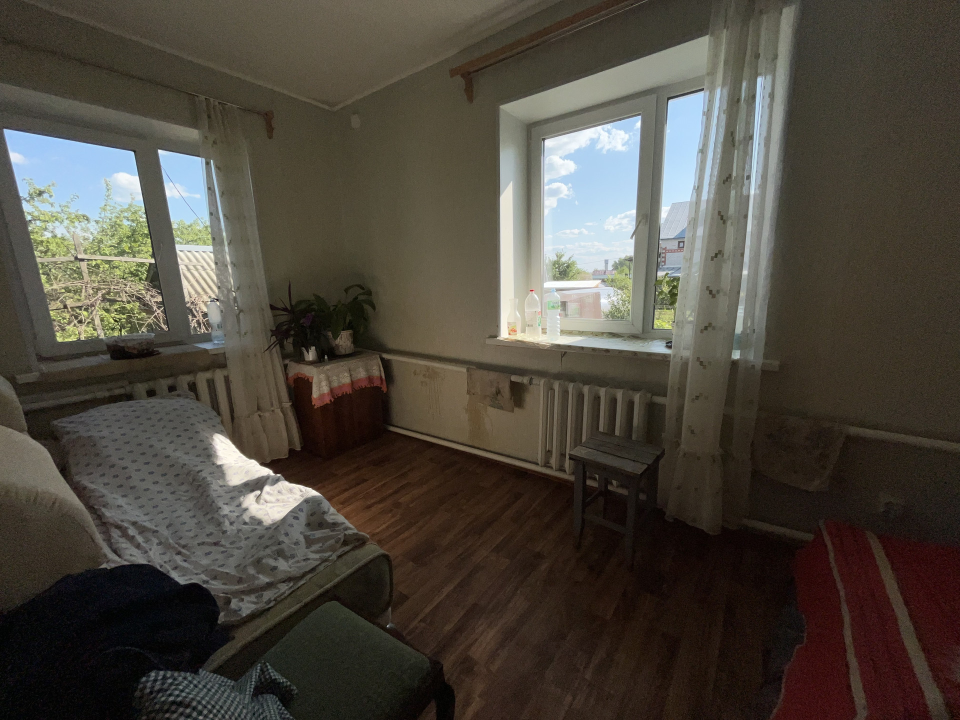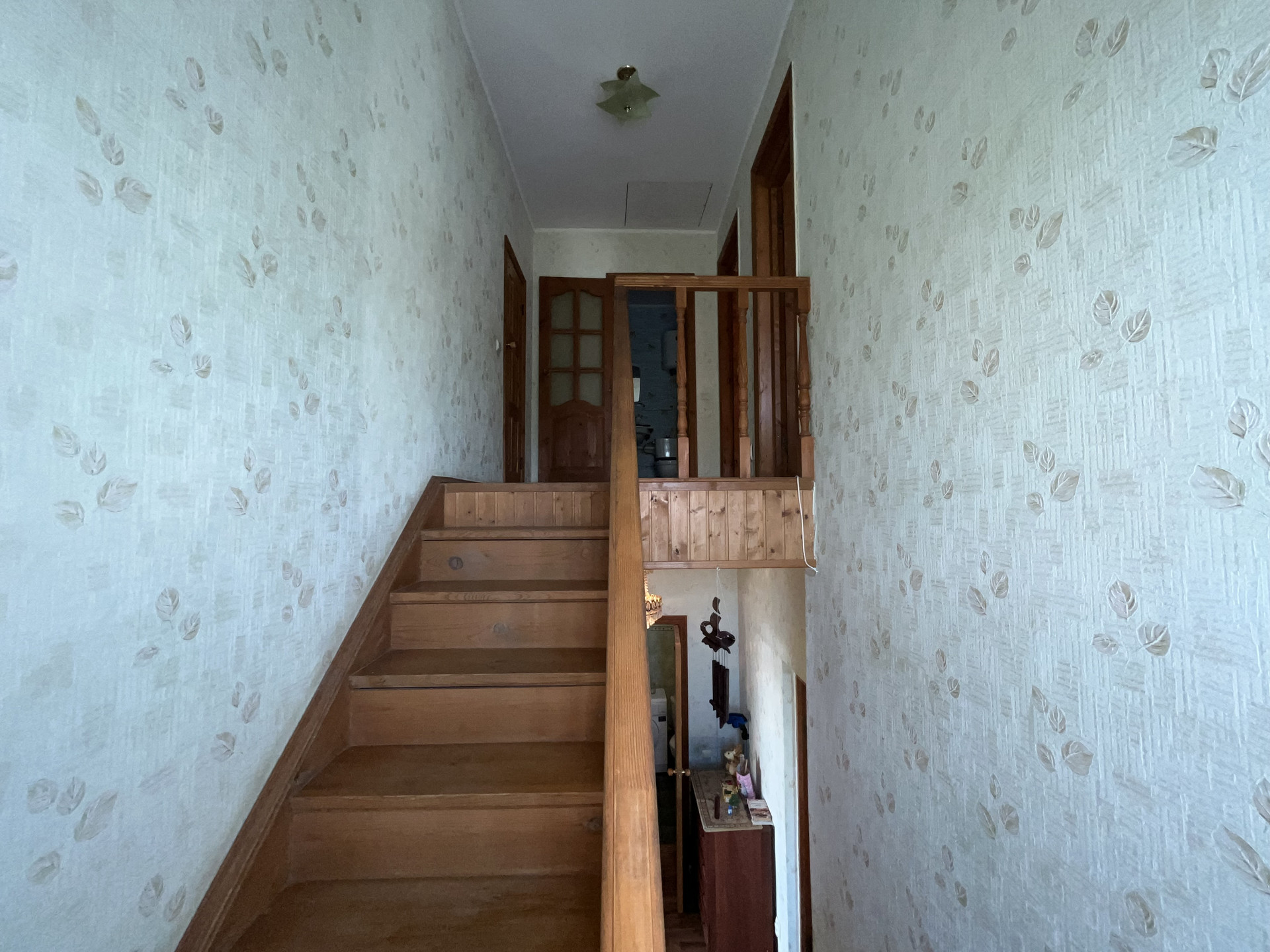 2 этаж - лестница деревянная: Сан узел (требуется ремонт), 1 комната (обшита вагонкой - покрыта лаком) окна в Сад, 2 комната (обшита вагонкой - покрыта лаком) окна на улицу